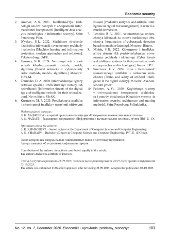 6. Кузнецов М. П. Предиктивная аналитика и искусственный интеллект в управлении цифровыми рисками. - Казань: Казанский университет, 2023. - 257 с.