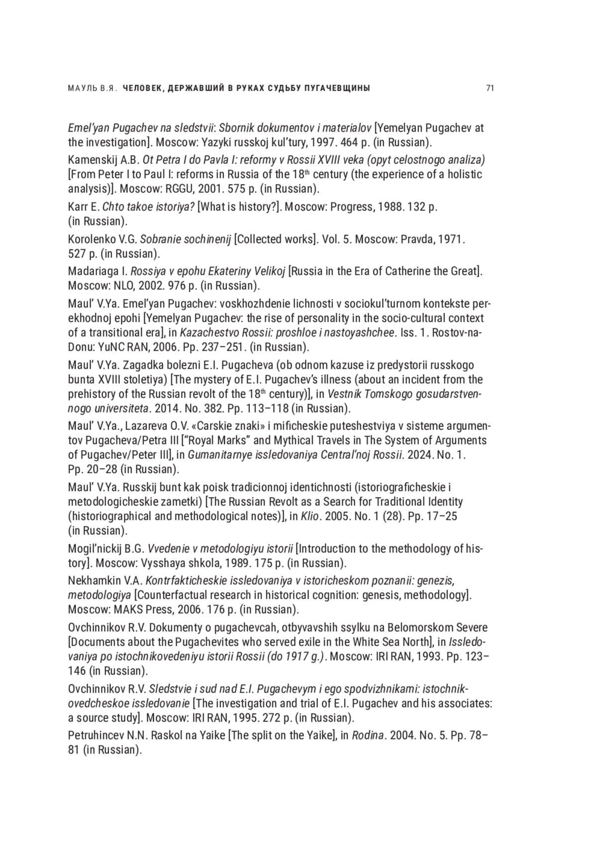 МАУЛЬ В. Я. ЧЕЛОВЕК, ДЕРЖАВШИЙ В РУКАХ СУДЬБУ ПУГАЧЕВЩИНЫ (ТАЛОВОЙ УМЁТ, АВГУСТ 1773 Г.) // НОВОЕ ПРОШЛОЕ. 2025. № 1