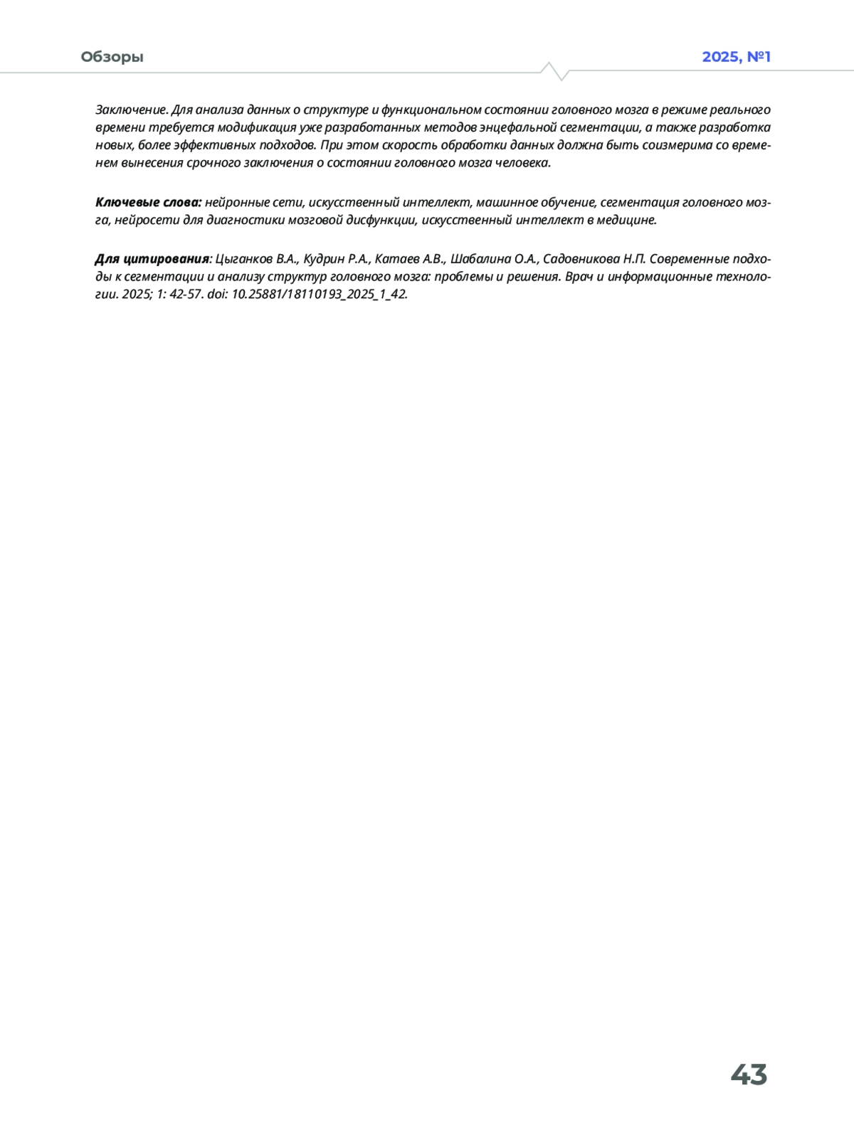 24. Алексеева М.Г., Зубов А.И., Новиков М.Ю. Искусственный интеллект в медицине // МНИЖ. - 2022. - №7-2(121). - C.10-13.