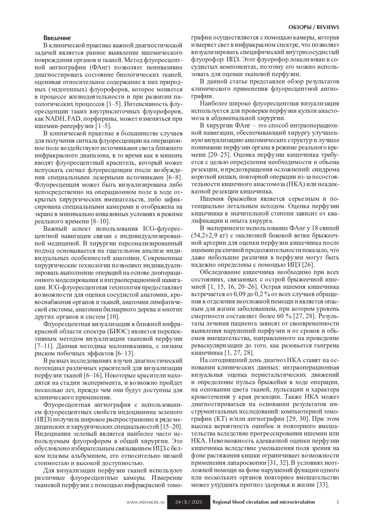 ЛЕЛЯВИНА Т. А., КОРНЮШИН О. В., ШЕМИЛОВ Р. Р., МАСЛЕЙ В. В., СОНИН Д. Л., ПАПАЯН Г. В., ДАНИЛОВ И. Н., ГАЛАГУДЗА М. М. ПРИМЕНЕНИЕ МЕТОДА ФЛУОРЕСЦЕНТНОЙ АНГИОГРАФИИ С ИСПОЛЬЗОВАНИЕМ ИНДОЦИАНИНА ЗЕЛЕНОГО: ЭКСПЕРИМЕНТАЛЬНЫЕ И КЛИНИЧЕСКИЕ ИССЛЕДОВАНИЯ // РЕГИОНАРНОЕ КРОВООБРАЩЕНИЕ И МИКРОЦИРКУЛЯЦИЯ. 2025. № 3 (95), ТОМ 24