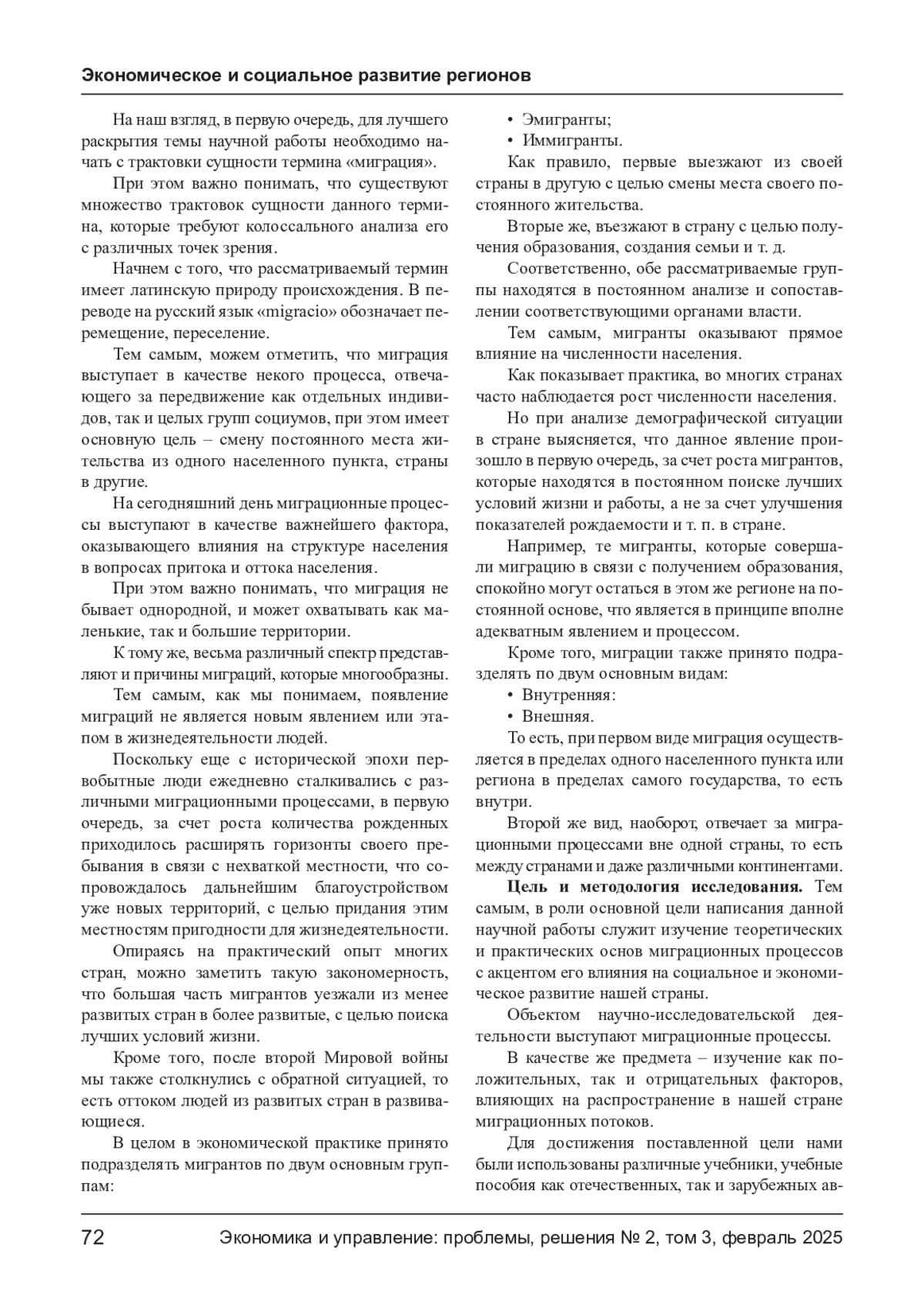Статья: ВЛИЯНИЕ МИГРАЦИОННЫХ ПРОЦЕССОВ НА СОЦИАЛЬНО-ЭКОНОМИЧЕСКОЕ РАЗВИТИЕ РЕГИОНОВ РФ (2025)