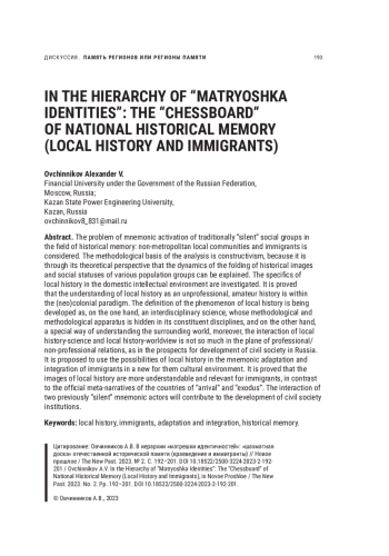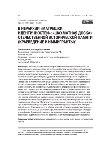 В статье рассматривается проблема мнемонической активации традиционно «молчаливых» в поле отечественной исторической памяти социальных групп: нестоличных местных сообществ и иммигрантов. Методологической базой анализа является конструктивизм, т. к. именно через его теоретический ракурс можно объяснить динамику складывания исторических образов и социальных статусов различных групп населения. Исследуется специфика краеведения в отечественной интеллектуальной среде. Доказывается, что понимание краеведения в качестве непрофессиональной, любительской истории находится в рамках (нео)колониальной парадигмы. Вырабатывается определение феномена краеведения как, с одной стороны, междисциплинарной науки, чей методологический и методический аппарат сокрыт в составляющих ее дисциплинах, а с другой — особого способа осмысления окружающего мира, причем взаимодействие краеведения-науки и краеведения-мировоззрения находится не столько в плоскости отношений профессионал/непрофессионал, сколько в перспективах развития в России гражданского общества. Предлагается использование возможностей краеведения при мнемонической адаптации и интеграции иммигрантов в новой для них культурной среде. Доказывается, что образы местной истории для иммигрантов более понятны и актуальны, в отличие от официальных метанарративов стран «исхода» и «прибытия». Взаимодействие двух «молчавших» ранее мнемонических акторов объективно будет способствовать развитию институтов гражданского общества