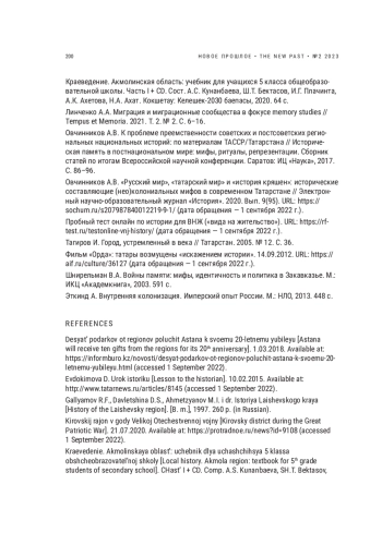8. Овчинников А.В. “Русский мир”, “татарский мир” и “история кряшен”: исторические составляющие (нео)колониальных мифов в современном Татарстане // Электронный научно-образовательный журнал “История”. 2020. Вып. 9(95). URL: https://sochum.ru/s207987840012219-9-1/ (дата обращения - 1 сентября 2022 г.). EDN: HKLAER