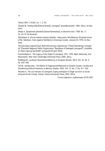 Статья: "БОЛЬШОЙ РАДИУС" БЛОКАДЫ ЛЕНИНГРАДА: МНОЖЕСТВЕННАЯ ТРАНСЛОКАЛЬНОСТЬ И КУЛЬТУРНАЯ ПАМЯТЬ О ВЕЛИКОЙ ОТЕЧЕСТВЕННОЙ ВОЙНЕ В 1960-1980-Е ГГ (2023)