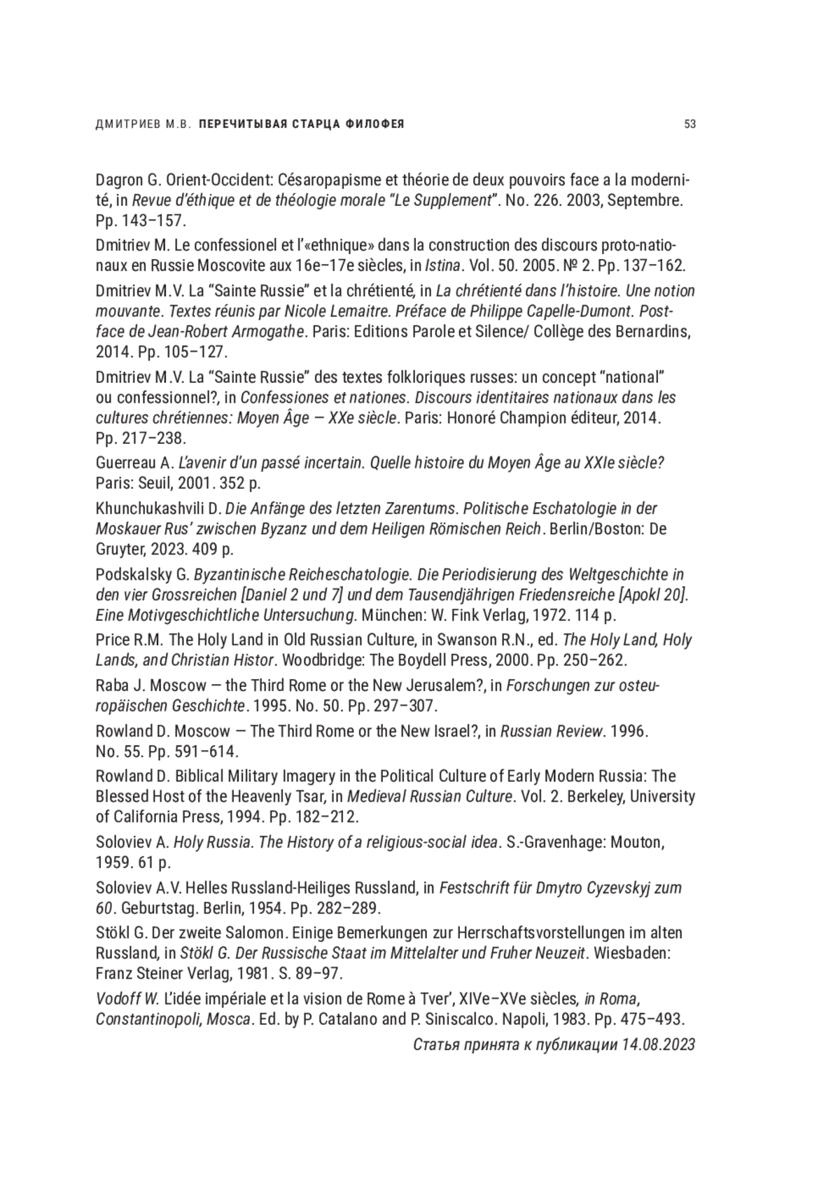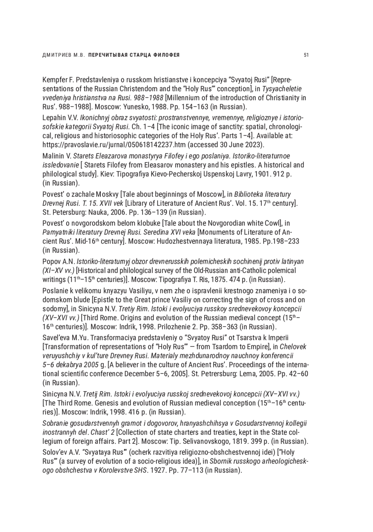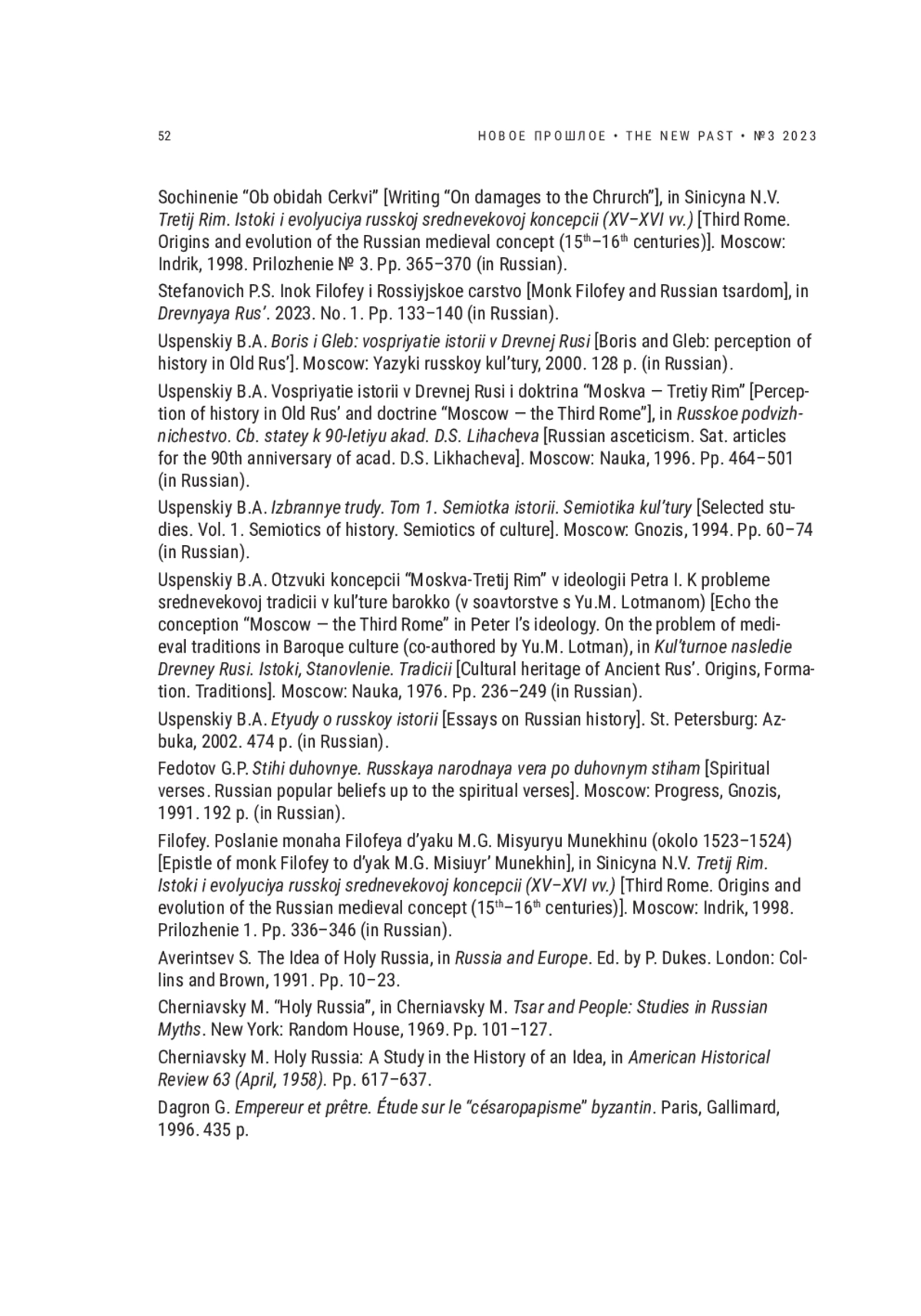 ДМИТРИЕВ М. В. ПЕРЕЧИТЫВАЯ СТАРЦА ФИЛОФЕЯ: ПРЕДСТАВЛЕНИЯ О РОССИИ КАК "РОМЕЙСКОМ ЦАРСТВЕ" В ПОСЛАНИИ ФИЛОФЕЯ МИСЮРЮ МУНЕХИНУ (1523 Г.) // НОВОЕ ПРОШЛОЕ. 2023. № 3