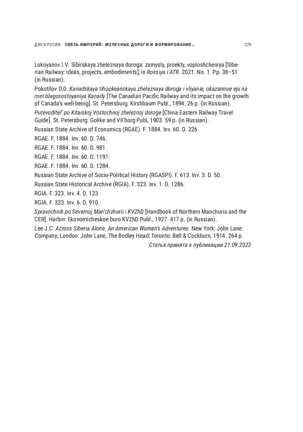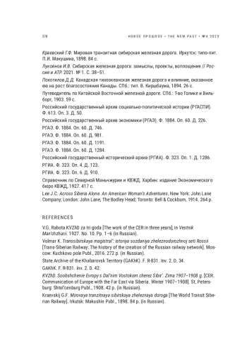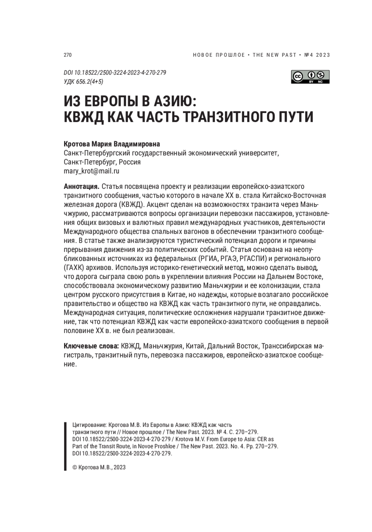 КРОТОВА М. В. ИЗ ЕВРОПЫ В АЗИЮ: КВЖД КАК ЧАСТЬ ТРАНЗИТНОГО ПУТИ // НОВОЕ ПРОШЛОЕ. 2023. № 4
