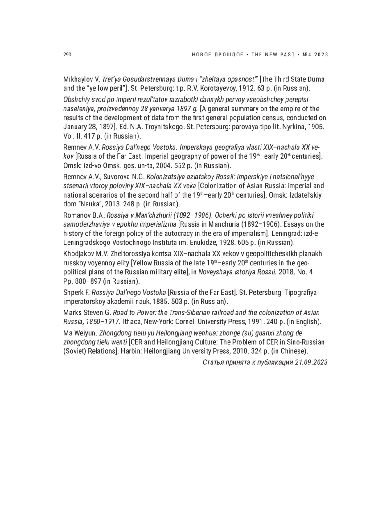 9. Дятлов В.И. Миграция китайцев и дискуссия о “желтой опасности” в дореволюционной России // Вестник Евразии. 2000. № 1 (8). С. 63-89. EDN: HYZEHH
