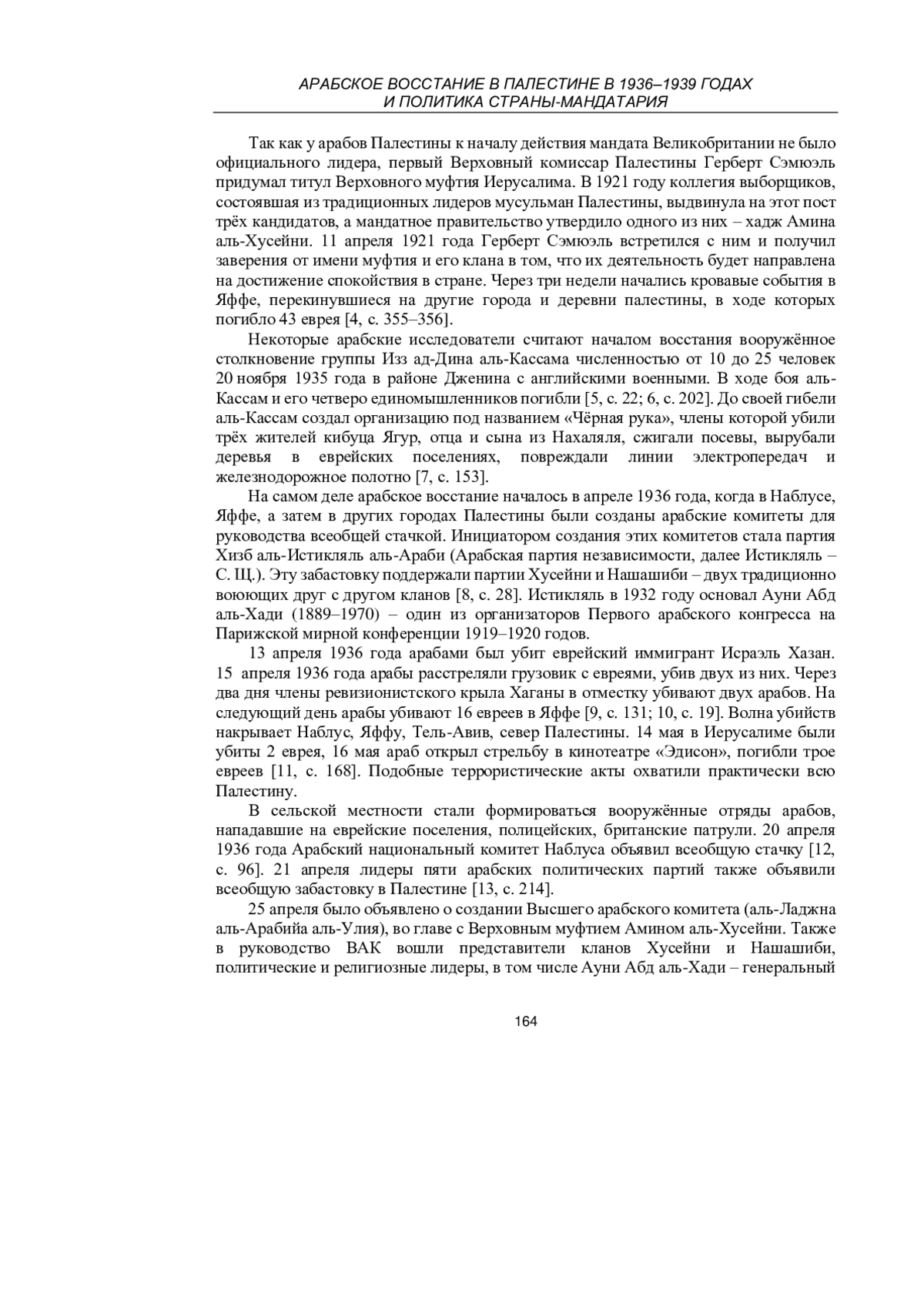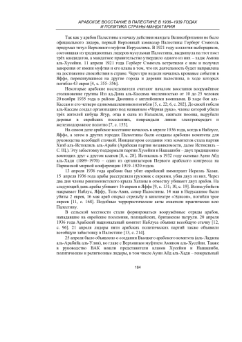 Накануне арабского восстания ситуация в подмандатной Палестине неуклонно накалялась. Кровавые события 1929 года в Иерусалиме, резня в Хевроне, где были убиты 67 евреев и десятки ранены, постоянные вооружённые стычки, в ходе которых по официальным английским данным погибли 133 еврея и 116 арабов, еврейская колонизация Палестины, категорическое непризнание права евреев на проживание в стране со стороны Арабского палестинского конгресса (АПК), а затем, после его роспуска, Высшим арабским комитетом (ВАК), Верховного муфтия Палестины Амина аль-Хусейни (сначала именовавшегося Верховным муфтием Иерусалима – С. Щ.) приводили к росту арабо-еврейского противостояния, в конце концов вылившегося в арабское восстание 1936–1939 годов [1, с. 232; 2, с. 40].