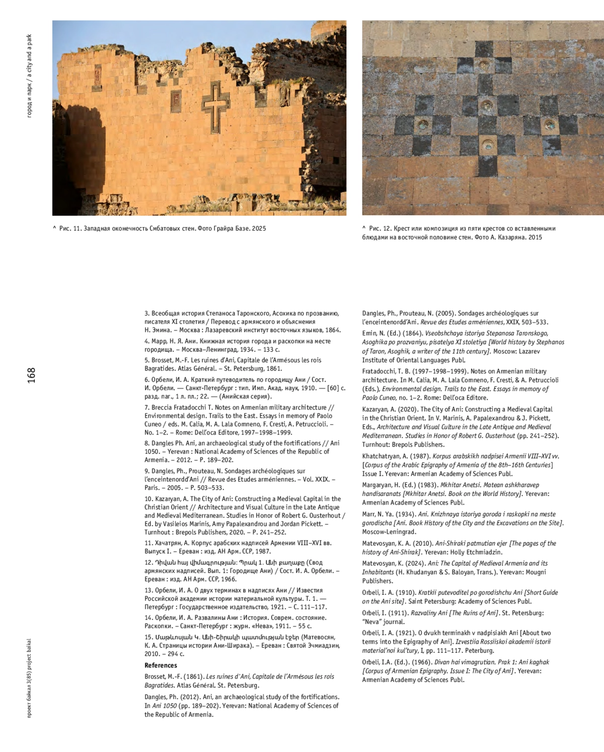 8. Dangles Ph. Ani, an archaeological study of the fortifications // Ani 1050. - Yerevan: National Academy of Sciences of the Republic of Armenia. - 2012. - P. 189-202.