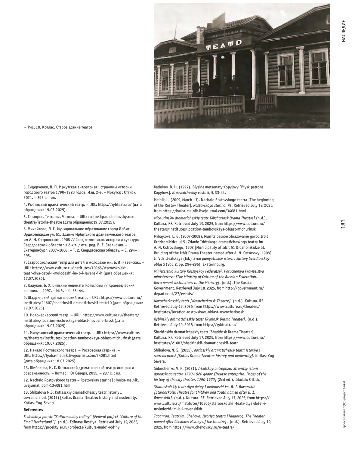 ГАВРИЛОВА М. Н. ТЕАТРЫ МАЛЫХ ГОРОДОВ РОССИИ // ПРОЕКТ БАЙКАЛ. 2025. № 85, ТОМ 22