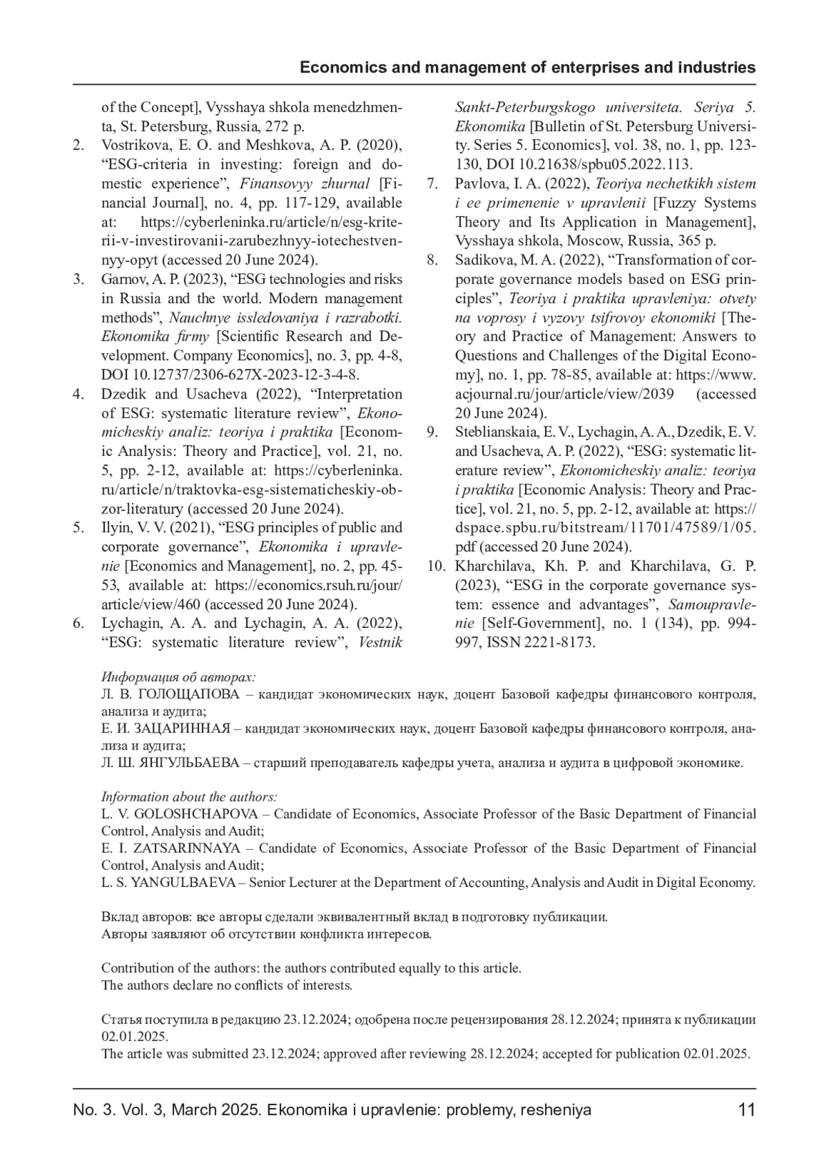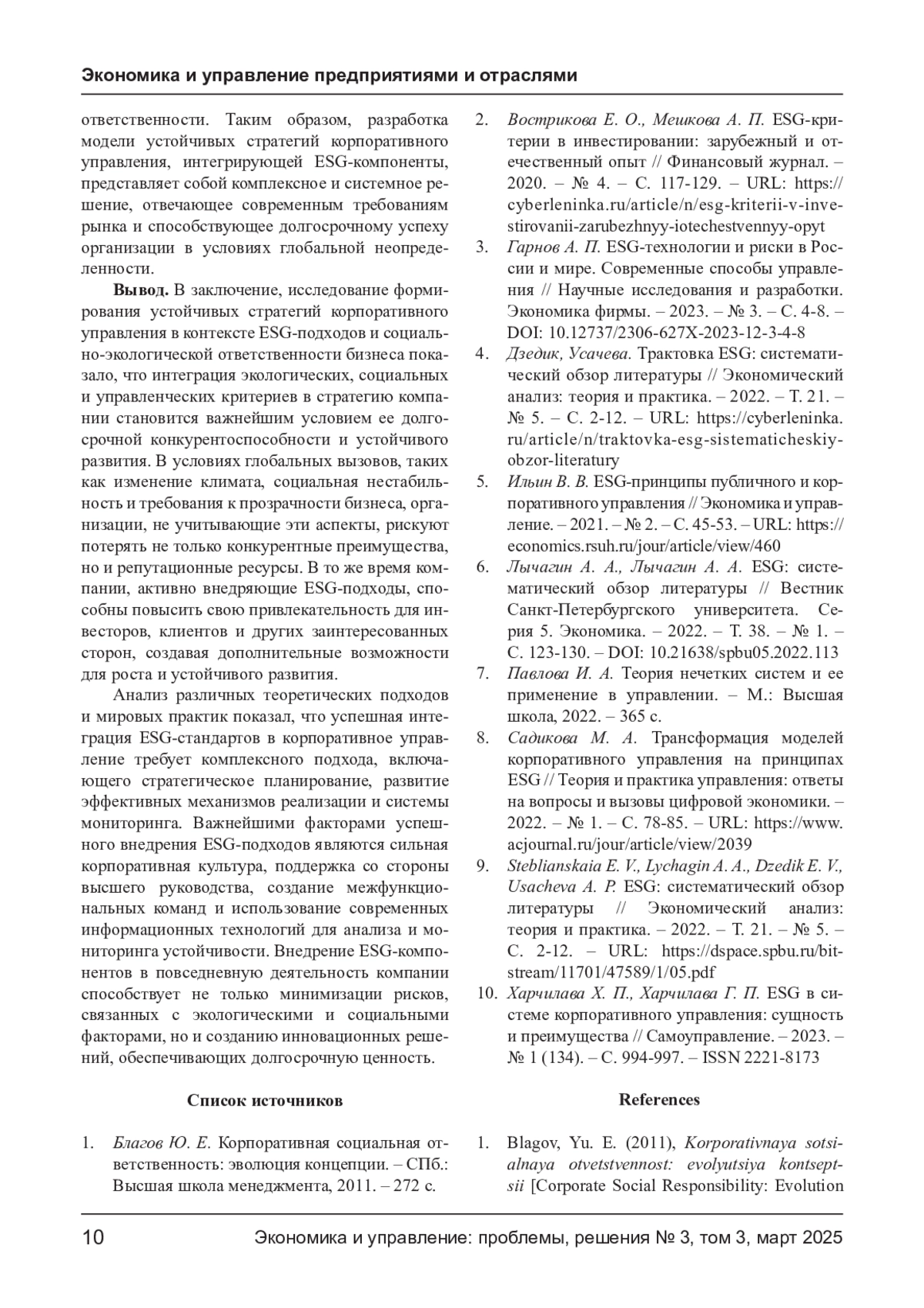 9. Steblianskaia E. V., Lychagin A. A., Dzedik E. V., Usacheva A. P. ESG: систематический обзор литературы // Экономический анализ: теория и практика. - 2022. - Т. 21. - № 5. - С. 2-12. - URL: https://dspace.spbu.ru/bitstream/11701/47589/1/05.pdf.