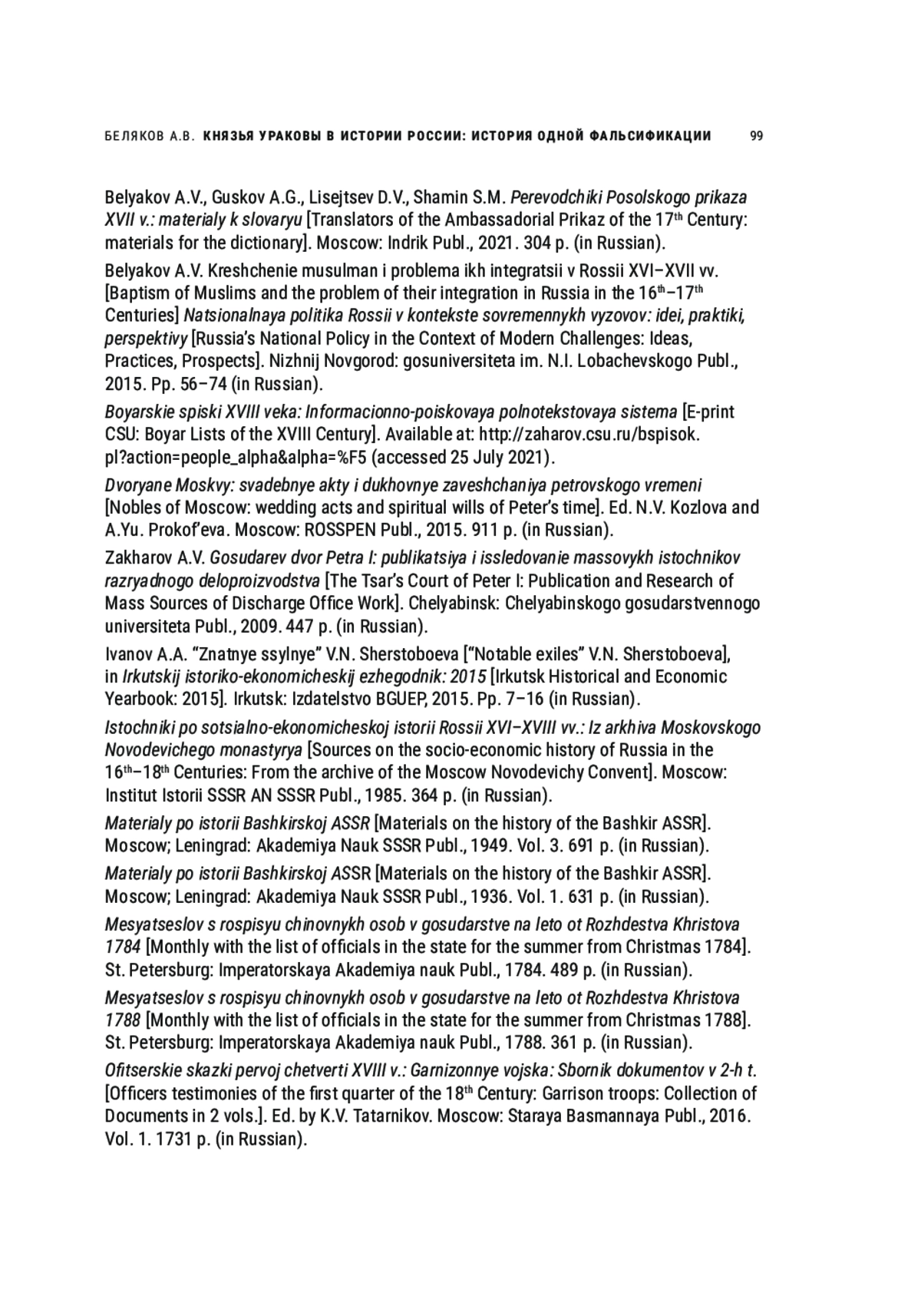 4. Беляков А.В., Гуськов А.Г., Лисейцев Д.В., Шамин С.М. Переводчики Посольского приказа XVII в.: Материалы к словарю. М.: Индрик, 2021. 304 с. EDN: SYDGSG