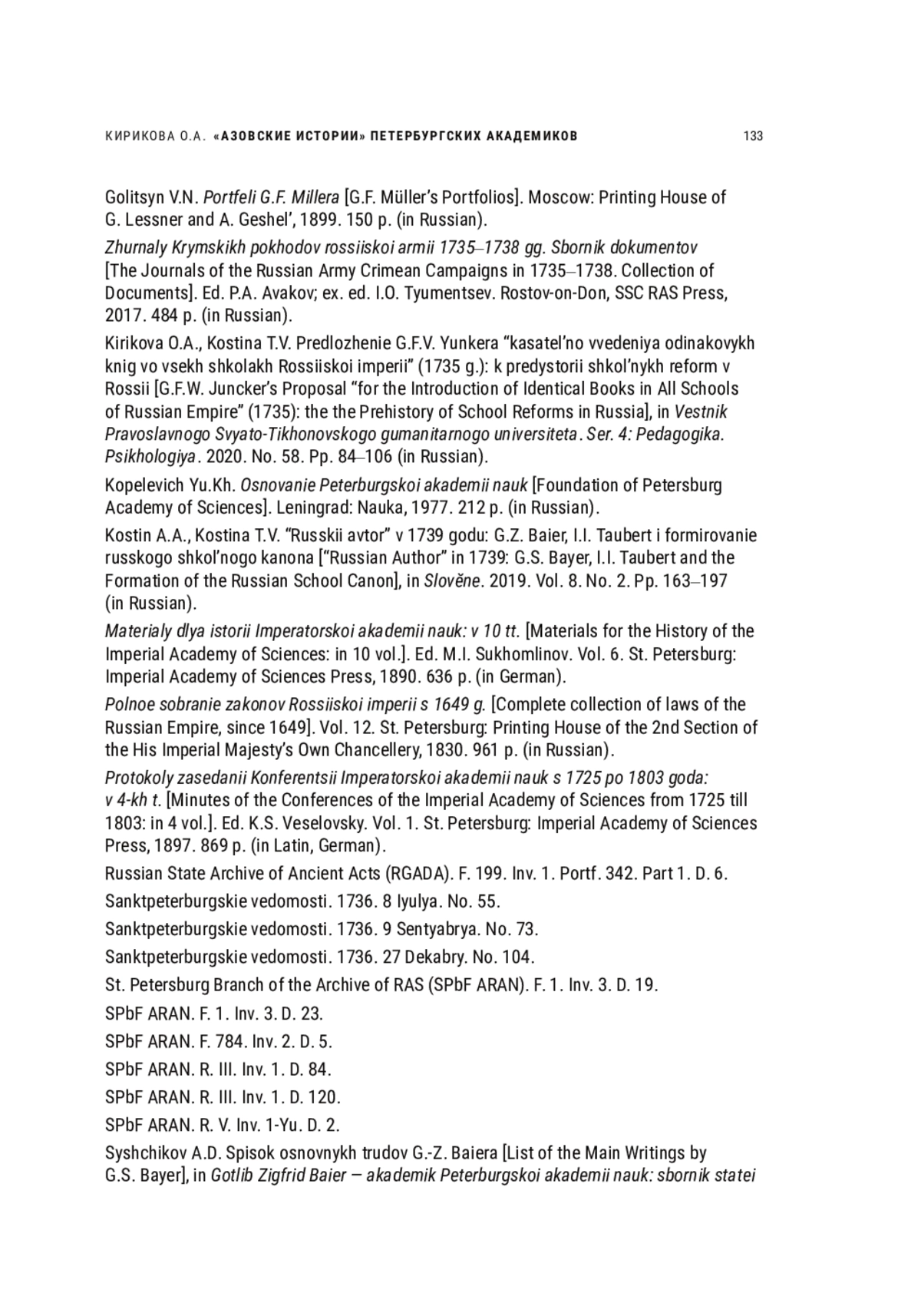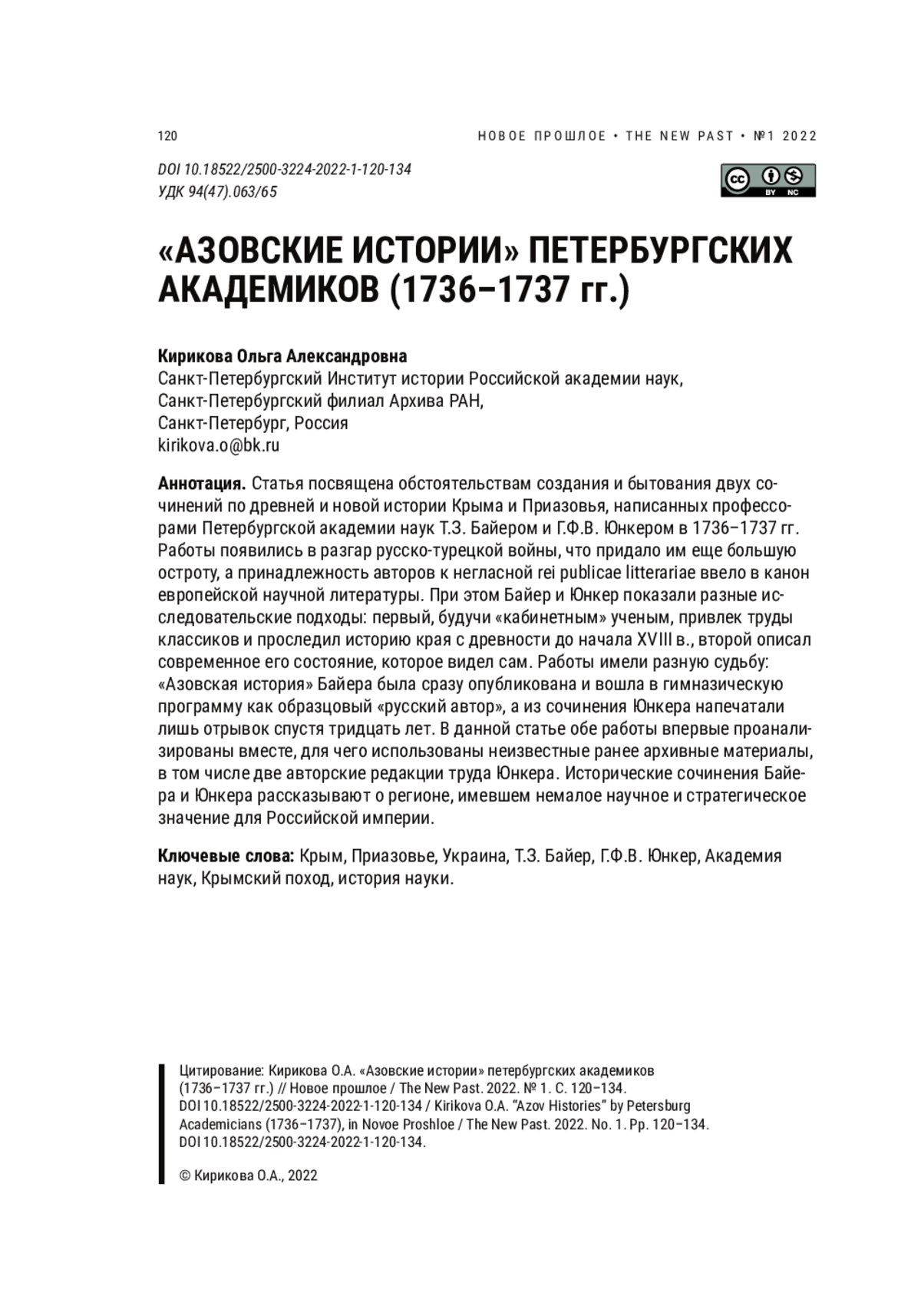 КИРИКОВА О. А. "АЗОВСКИЕ ИСТОРИИ" ПЕТЕРБУРГСКИХ АКАДЕМИКОВ (1736-1737 ГГ.) // НОВОЕ ПРОШЛОЕ. 2022. № 1