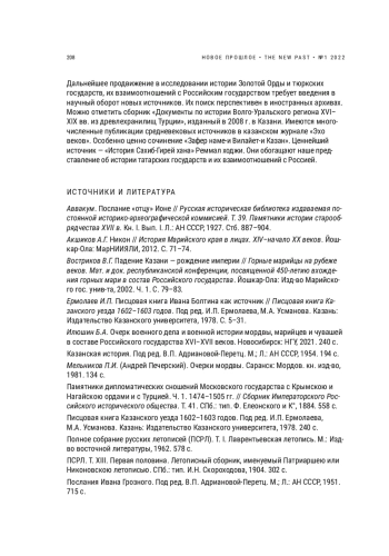 5. Илюшин Б.А. Очерк военного дела и военной истории мордвы, марийцев и чувашей в составе Российского государства XVI-XVII веков. Новосибирск: НГУ, 2021. 240 с. EDN: TJSPIK
