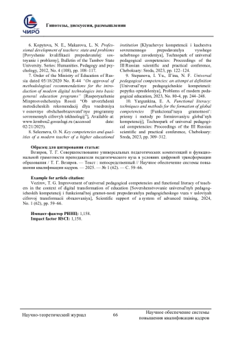 6. Копытова Н. Е., Макарова Л. Н. Повышение квалификации преподавателей вуза: состояние и проблемы // Вестник Тамбовского университета. Серия: Гуманитарные науки. 2012. № 4 (108). С. 108-117. EDN: OWXXQV