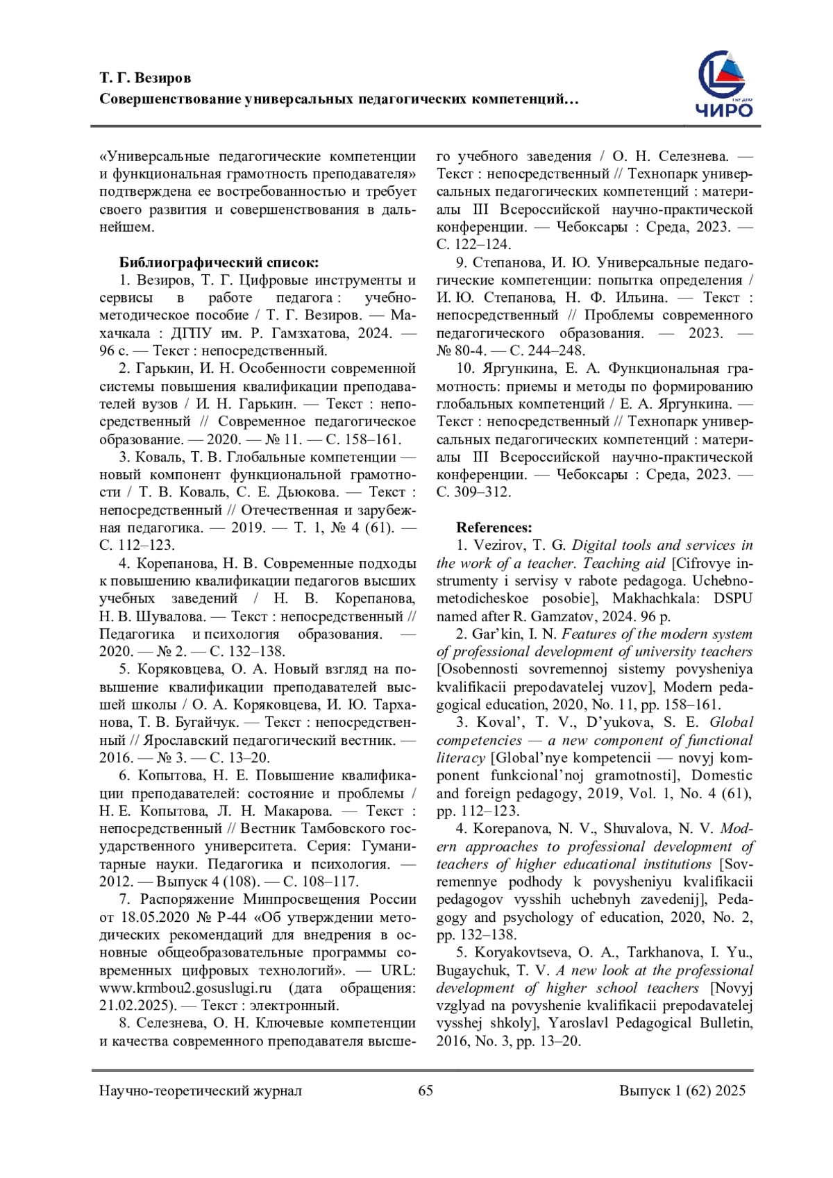 1. Везиров, Т. Г. Цифровые инструменты и сервисы в работе педагога: учебно-методическое пособие / Т. Г. Везиров. - Махачкала: ДГПУ им. Р. Гамзхатова, 2024. - 96 с. - Текст: непосредственный.