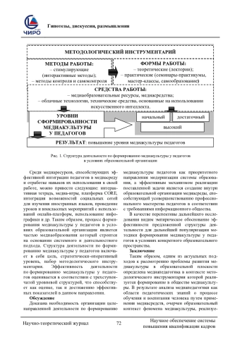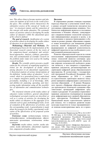 Ключевые фразы: медиакультура, ПЕДАГОГ, медиаобразование, медиаинформация, образовательная организация, компоненты медиакультуры