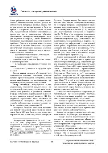 11. Самылкина, Н.Н. Искусственный интеллект в образовании (AIEd): от прикладных задач информатизации до изучения темы в содержании курса информатики/ Н. Н. Самылкина, А. А. Салахова. - Текст: непосредственный // Профильная школа. - 2021. - Том 9, № 5. - С. 10-24. EDN: XGYXSG