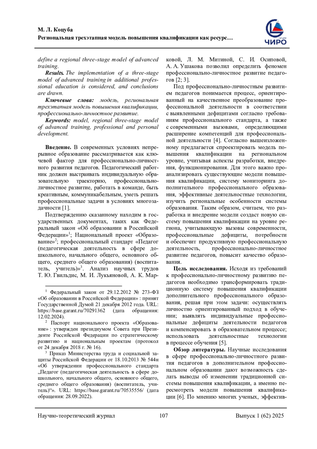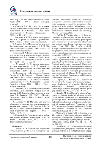 2. Гвильдис, Т. Ю., Окерешко А. В. Опережающее непрерывное профессиональное образование как основа становления современного педагога / Т. Ю. Гвильдис, А. В. Окерешко. - Текст: электронный // ЧиО. -2016. - № 2 (47). - URL: https://cyberleninka.ru/article/n/operezhayuschee-nepreryvnoe-professionalnoe-obrazovanie-kak-osnova-stanovleniya-sovremennogo-pedagoga (дата обращения: 20.02.2025).