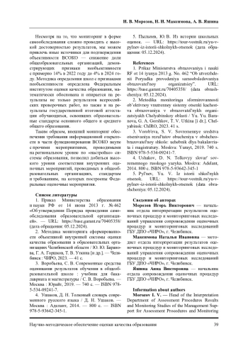 Статья: О РЕЗУЛЬТАТАХ МОНИТОРИНГА СФОРМИРОВАННОСТИ ОБЪЕКТИВНОЙ ВСОКО В ОБРАЗОВАТЕЛЬНЫХ ОРГАНИЗАЦИЯХ ЧЕЛЯБИНСКОЙ ОБЛАСТИ (2024)