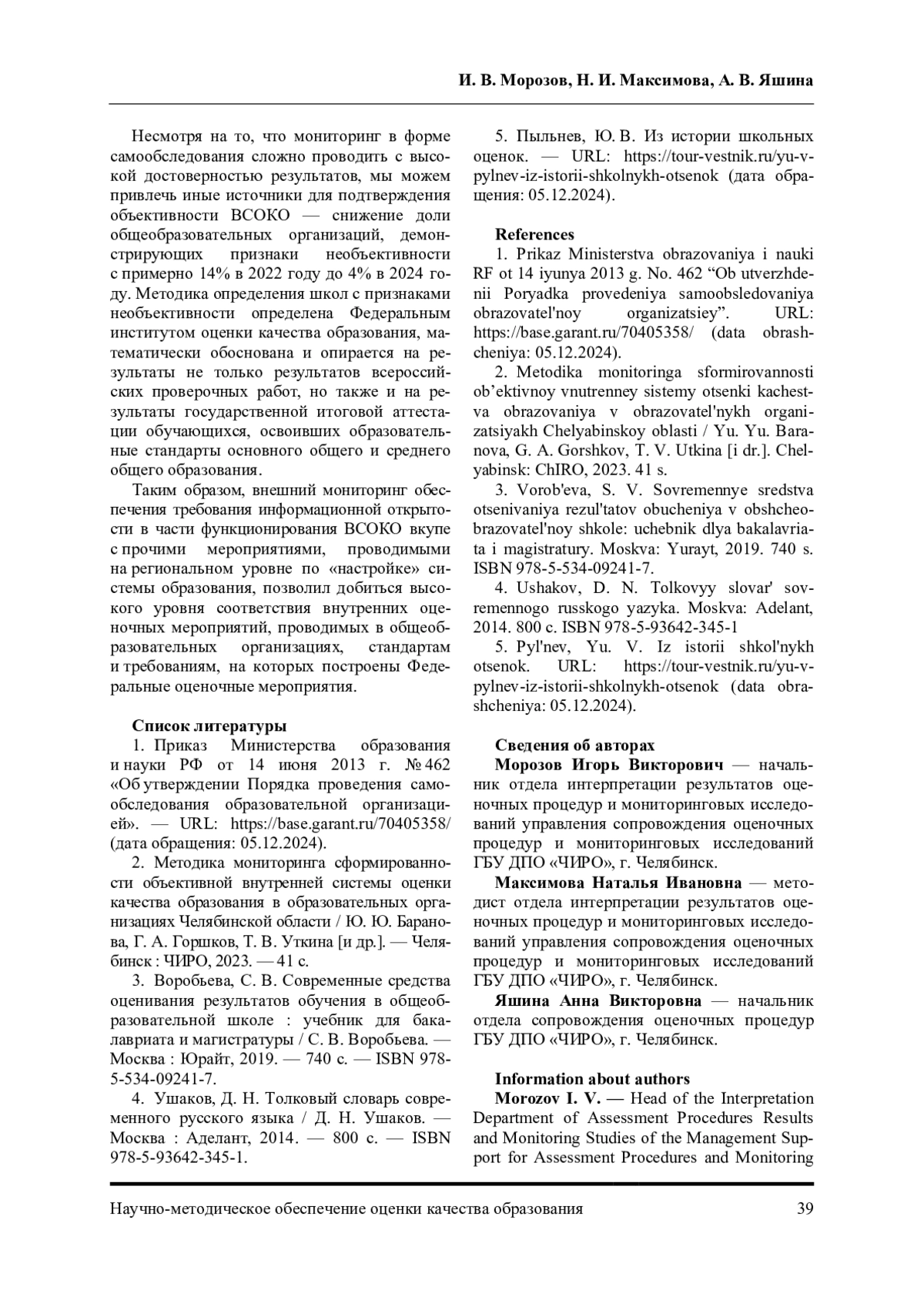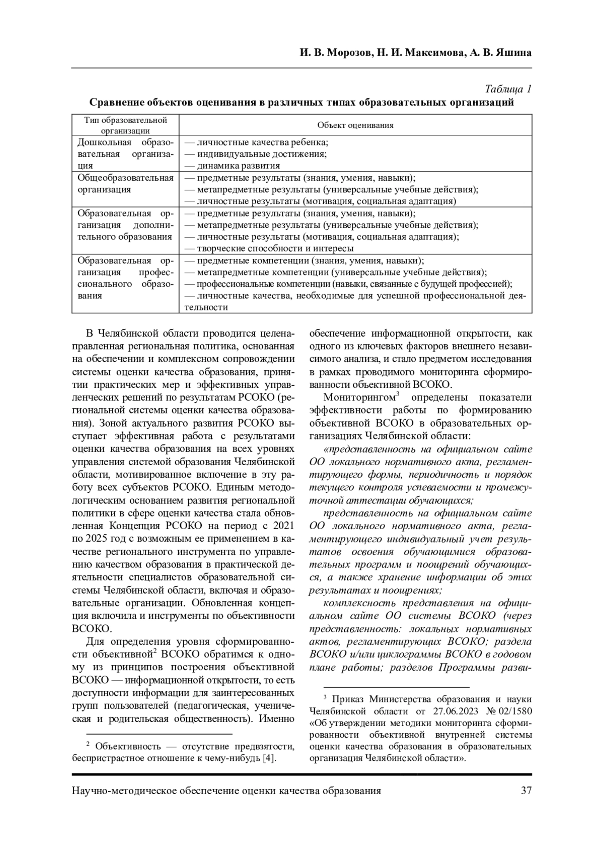 МОРОЗОВ И. В., МАКСИМОВА Н. И., ЯШИНА А. В. О РЕЗУЛЬТАТАХ МОНИТОРИНГА СФОРМИРОВАННОСТИ ОБЪЕКТИВНОЙ ВСОКО В ОБРАЗОВАТЕЛЬНЫХ ОРГАНИЗАЦИЯХ ЧЕЛЯБИНСКОЙ ОБЛАСТИ // НАУЧНО-МЕТОДИЧЕСКОЕ ОБЕСПЕЧЕНИЕ ОЦЕНКИ КАЧЕСТВА ОБРАЗОВАНИЯ. 2024. № 2 (20)