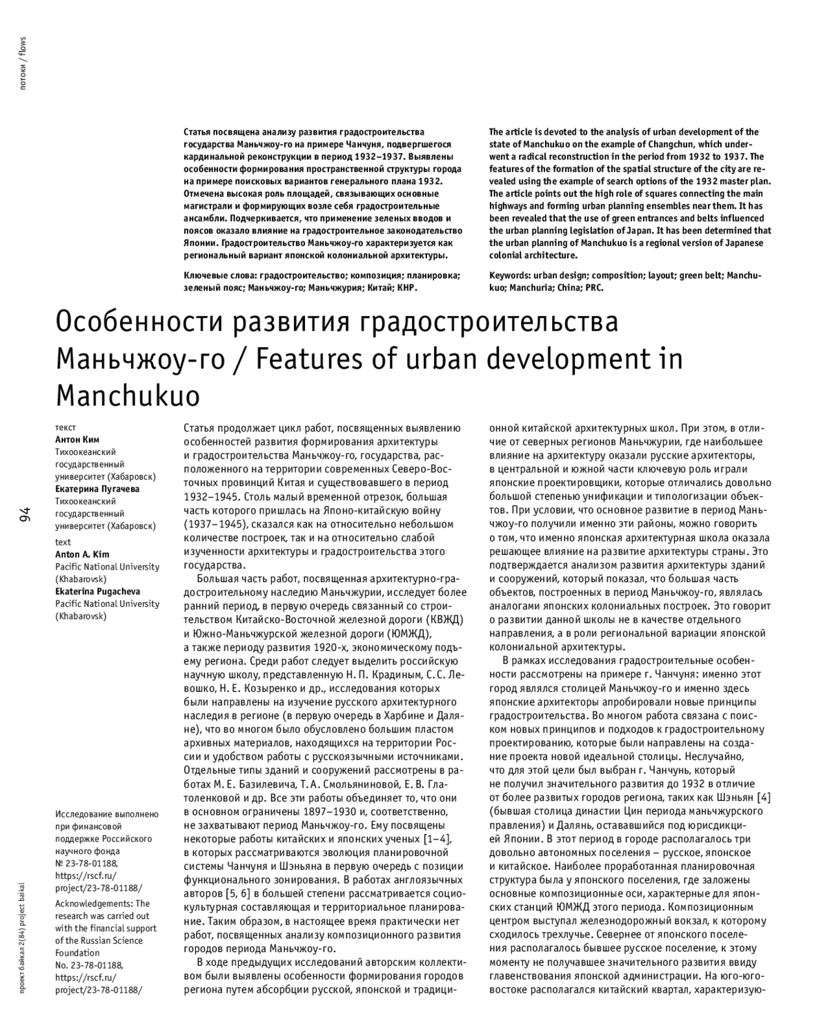 КИМ А. А., ПУГАЧЕВА Е. ОСОБЕННОСТИ РАЗВИТИЯ ГРАДОСТРОИТЕЛЬСТВА МАНЬЧЖОУ-ГО // ПРОЕКТ БАЙКАЛ. 2025. № 84, ТОМ 22