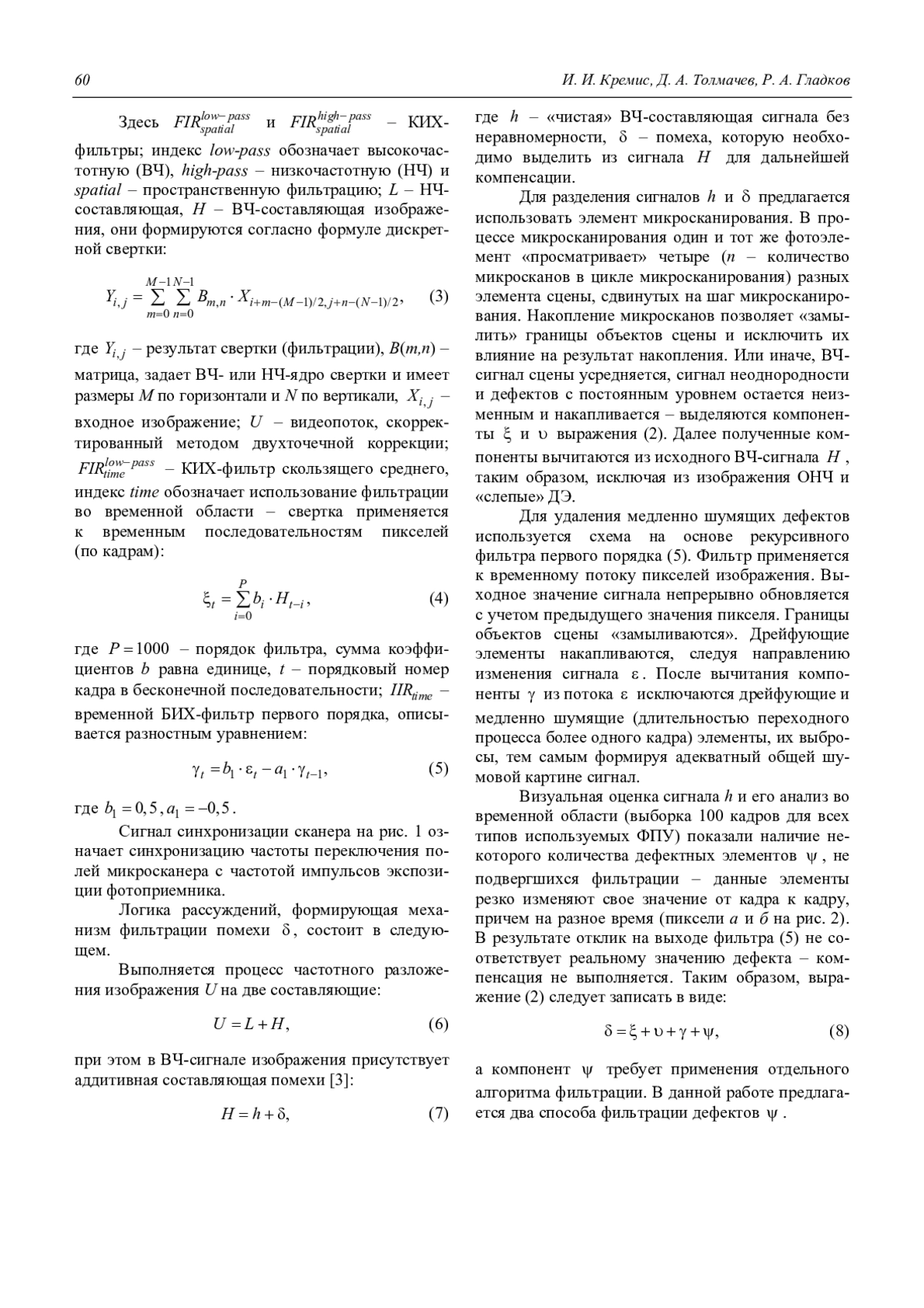 Кремис И. И., Толмачев Д. А., Гладков Р. А. Фильтрация остаточной неоднородности и дефектов изображения в тепловизорах с использованием микросканирования 58