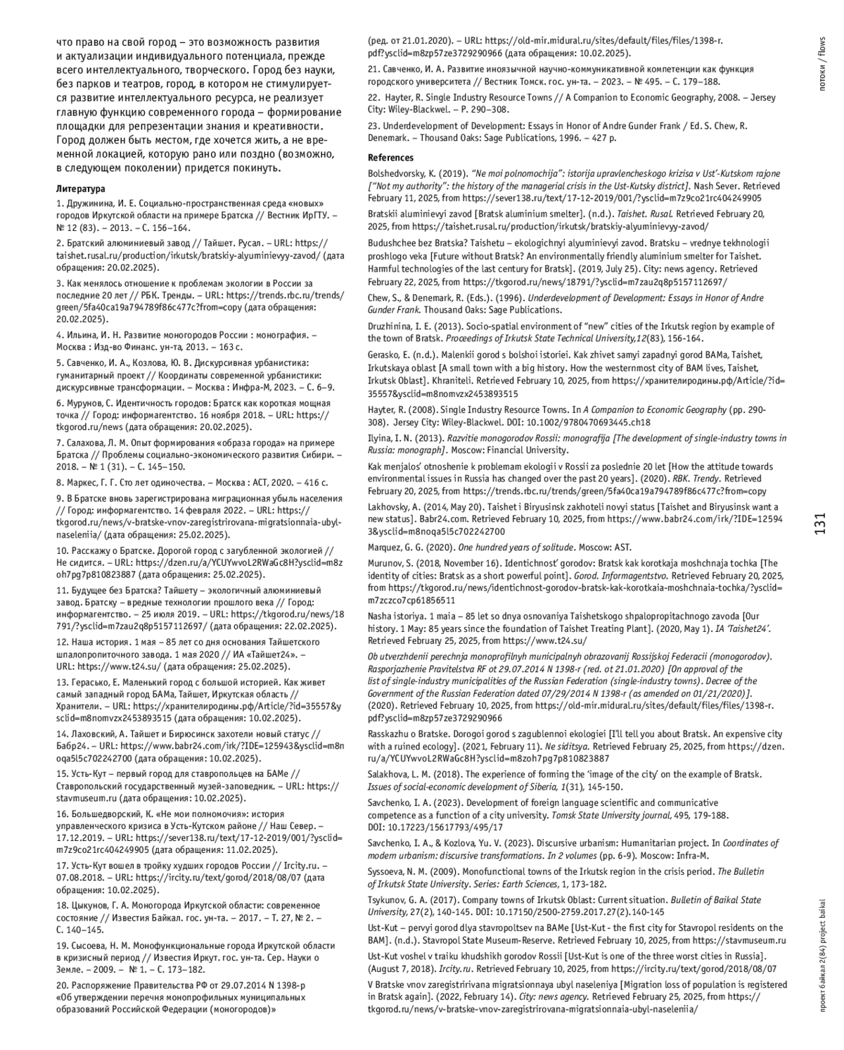 САВЧЕНКО И. А. ГОРОДА «СТАРОГО БАМА» В ПОТОКАХ НОВОЙ ИНДУСТРИАЛИЗАЦИИ // ПРОЕКТ БАЙКАЛ. 2025. № 84, ТОМ 22