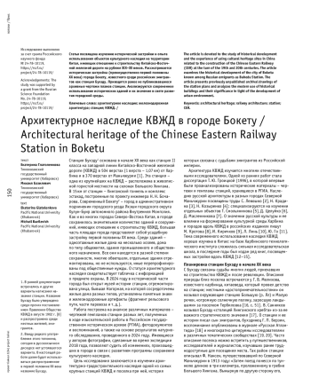Статья посвящена изучению исторической застройки и опыта использования объектов культурного наследия на территории Китая, имеющих отношение к строительству Китайско-Восточной железной дороги на рубеже XIX-XX веков. Рассматривается историческая застройка (преимущественно первой половины XX века) города Бокету, известного среди российских эмигрантов как станция Бухэду. Приводятся ранее не публиковавшиеся архивные чертежи планов станции. Анализируются современное использование исторических зданий и их значение в свете развития городской среды.