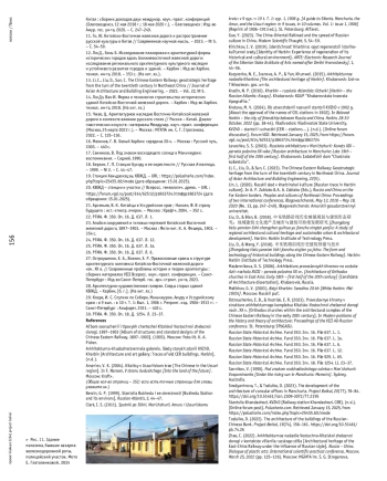 13. Li, C., Liu, D., Sun, C. The Chinese Eastern Railway: geostrategic heritage from the turn of the twentieth century in Northeast China // Journal of Asian Architecture and Building Engineering. - 2023. - Vol. 22, № 5.
