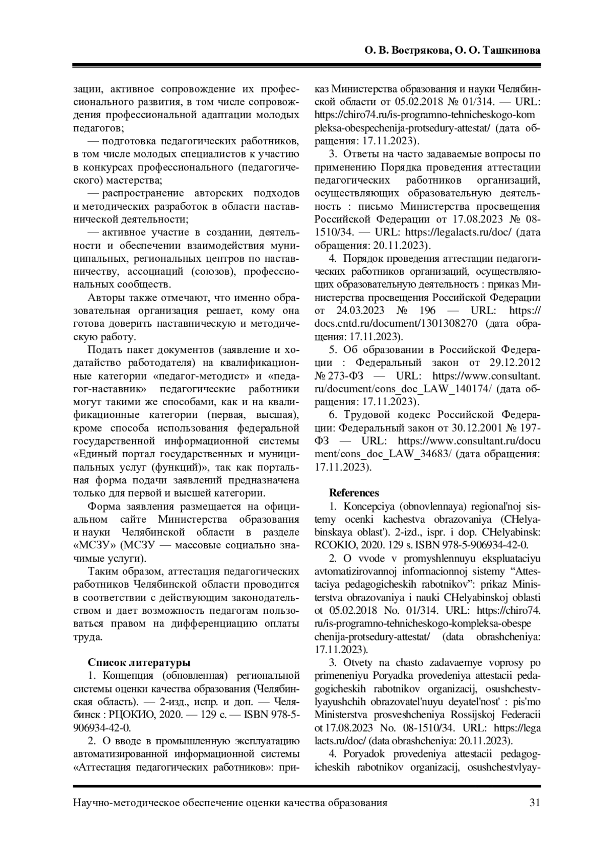 4. Порядок проведения аттестации педагогических работников организаций, осуществляющих образовательную деятельность: приказ Министерства просвещения Российской Федерации от 24.03.2023 № 196 - URL: https://docs.cntd.ru/document/1301308270(дата обращения: 17.11.2023).
