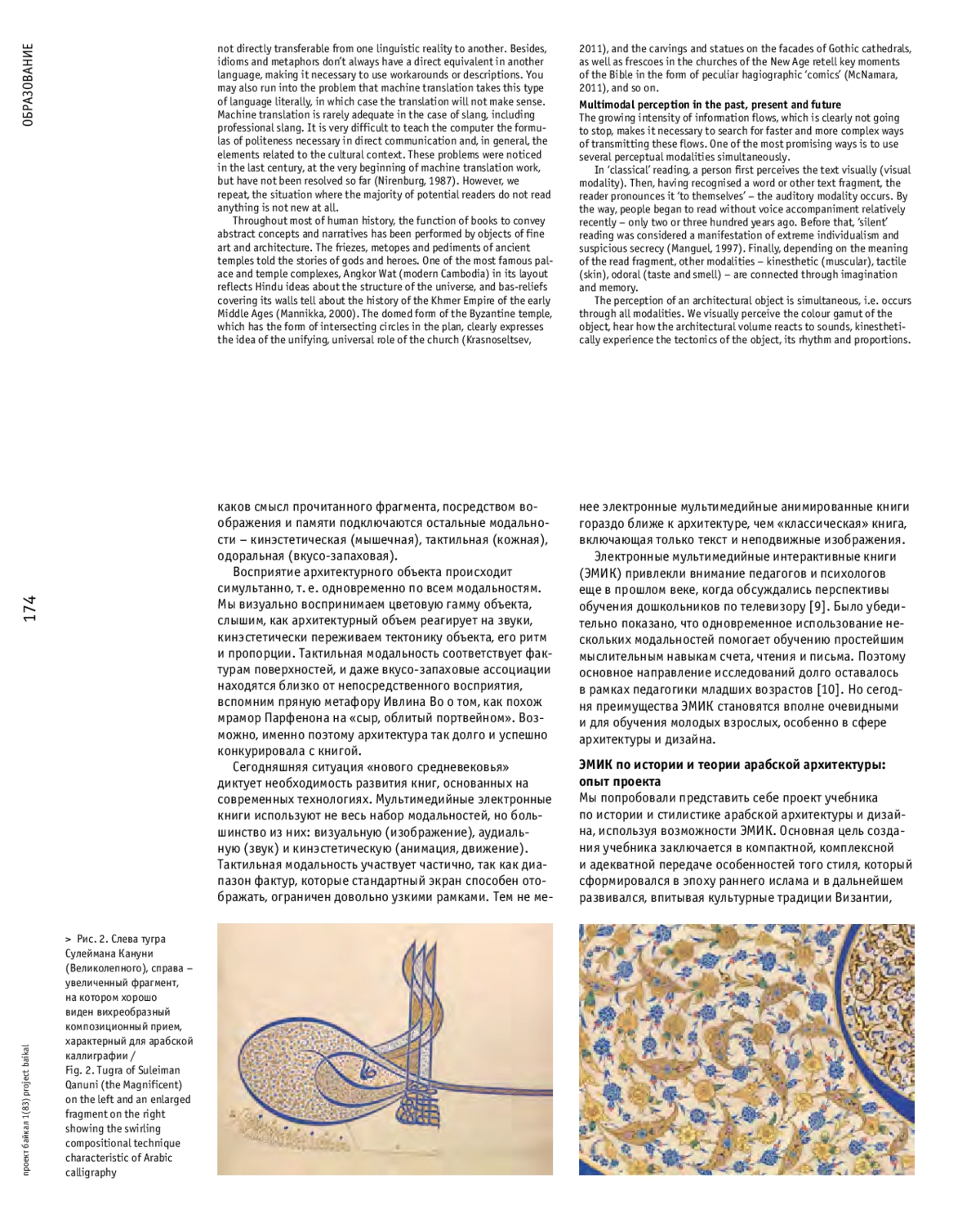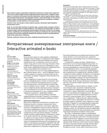 Книги являются одним из древнейших изобретений человечества. Сегодня многие люди перестают читать и демонстрируют признаки «функциональной неграмотности». Требуются новые приемы и технологии, помогающие читателю воспринимать сложные художественные образы. Этому отводится большая роль в преподавании истории и теории архитектуры. В статье рассматривается проект электронной мультимедийной анимированной книги (учебника), посвященной философии и истории арабского стиля в архитектуре.