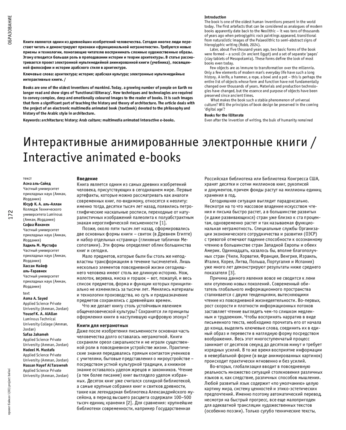 10. Sayed, A., Lucas, T. Producing Interactive Animated E-books: Design Frameworks, Educational Efficacy, and Future Directions // Linguistic and Philosophical Investigations. - 2024. - Vol. 23 (1). - Р. 959-977.