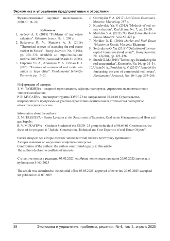 1. Авдеев А. П. Проблемы оценки объектов недвижимости // Вопросы оценки. № 1. 2018. 230 с.