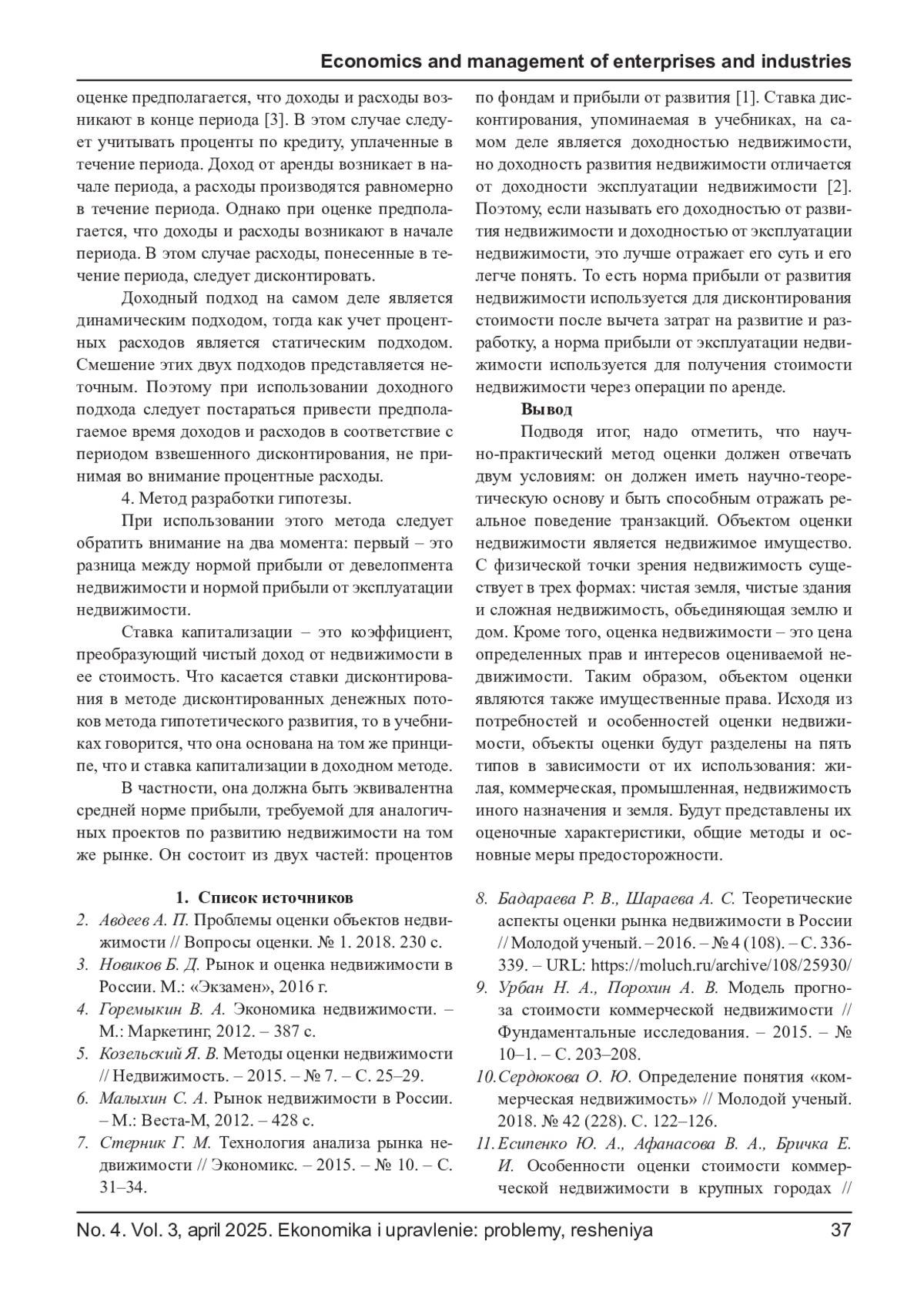 4. Козельский Я. В. Методы оценки недвижимости // Недвижимость. - 2015. - № 7. - С. 25-29.