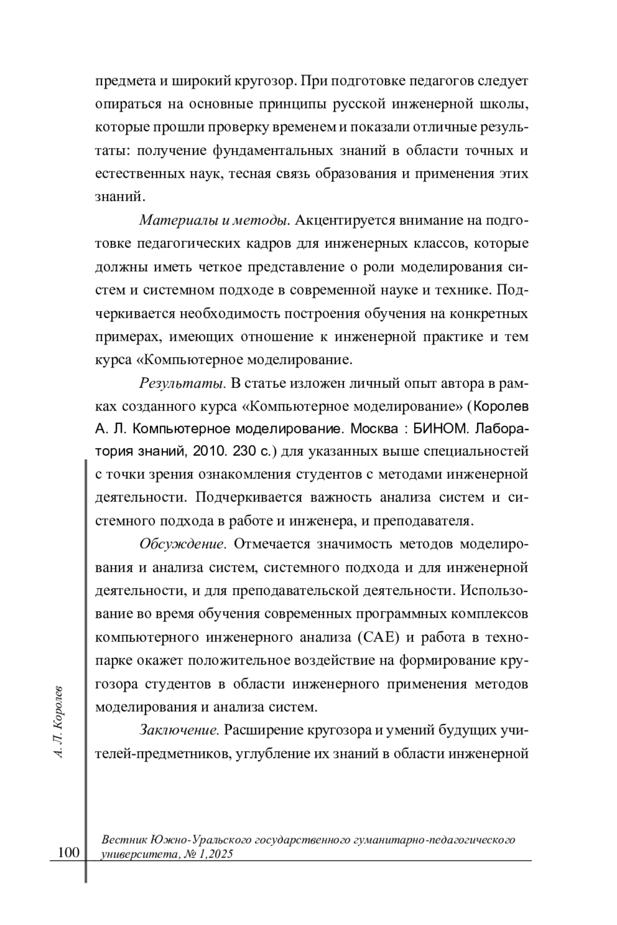 КОРОЛЕВ А. Л. КОМПЬЮТЕРНОЕ МОДЕЛИРОВАНИЕ СИСТЕМ В ИНЖЕНЕРНОЙ ПРАКТИКЕ // ВЕСТНИК ЮЖНО-УРАЛЬСКОГО ГОСУДАРСТВЕННОГО ГУМАНИТАРНО-ПЕДАГОГИЧЕСКОГО УНИВЕРСИТЕТА. 2025. № 1 (185)