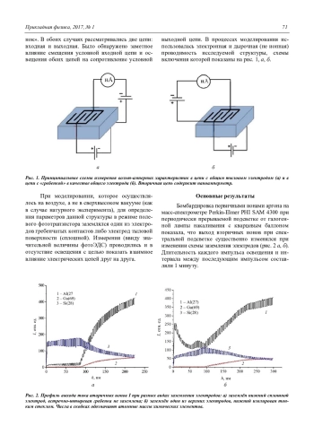 В представленной работе более подробно, чем раньше [7, 8], исследовано влияние характера заземления контактов на выход вторичных ионов из полупроводниково-диэлектрической мишени и определена крутизна эквивалентного электронного полевого фототранзистора с p–n-переходом на затворе. При натурной реализации двухпараметрического управления (светом и электрическим полем) возможно получить мишень с двойным управлением выходом вторичных (экзо-) ионов, что перспективно для создания пленочных наноструктур с управляемым составом.