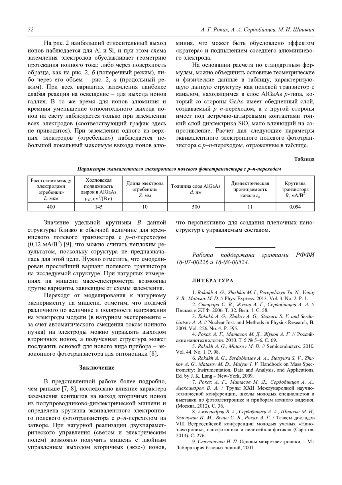 3. Rokakh A. G., Zhukov A. G., Stetsura S. V. and Serdobintsev A. A. // Nuclear Inst. and Methods in Physics Research, B. 2004. Vol. 226. No. 4. P. 595.