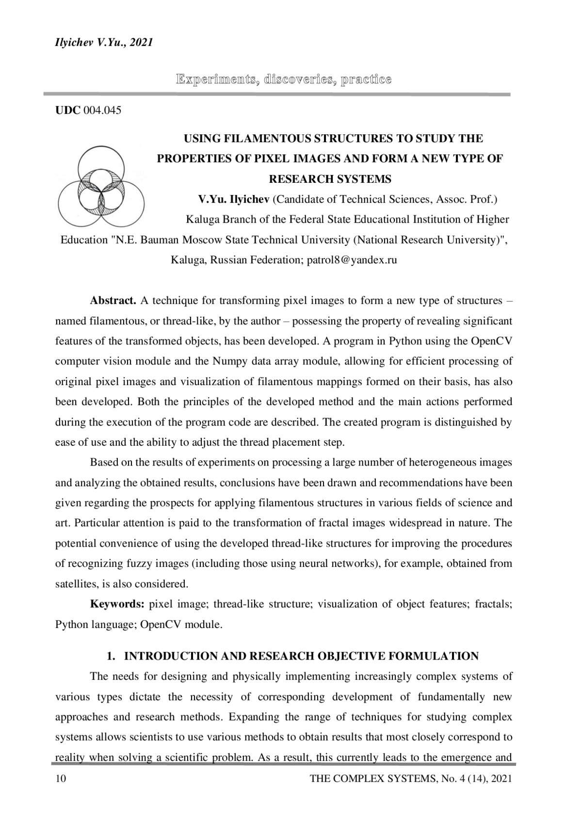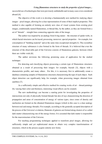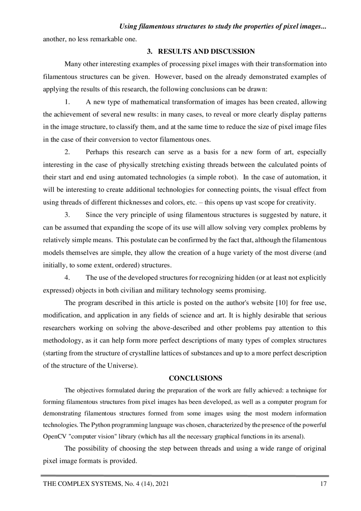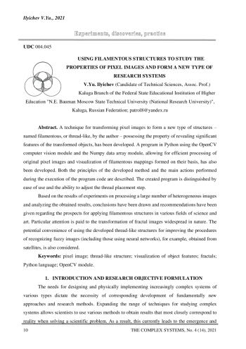 A technique for transforming pixel images to form a new type of structures – named filamentous, or thread-like, by the author – possessing the property of revealing significant features of the transformed objects, has been developed. A program in Python using the OpenCV computer vision module and the Numpy data array module, allowing for efficient processing of original pixel images and visualization of filamentous mappings formed on their basis, has also been developed. Both the principles of the developed method and the main actions performed during the execution of the program code are described. The created program is distinguished by ease of use and the ability to adjust the thread placement step. Based on the results of experiments on processing a large number of heterogeneous images and analyzing the obtained results, conclusions have been drawn and recommendations have been given regarding the prospects for applying filamentous structures in various fields of science and art. Particular attention is paid to the transformation of fractal images widespread in nature. The potential convenience of using the developed thread-like structures for improving the procedures of recognizing fuzzy images (including those using neural networks), for example, obtained from satellites, is also considered.