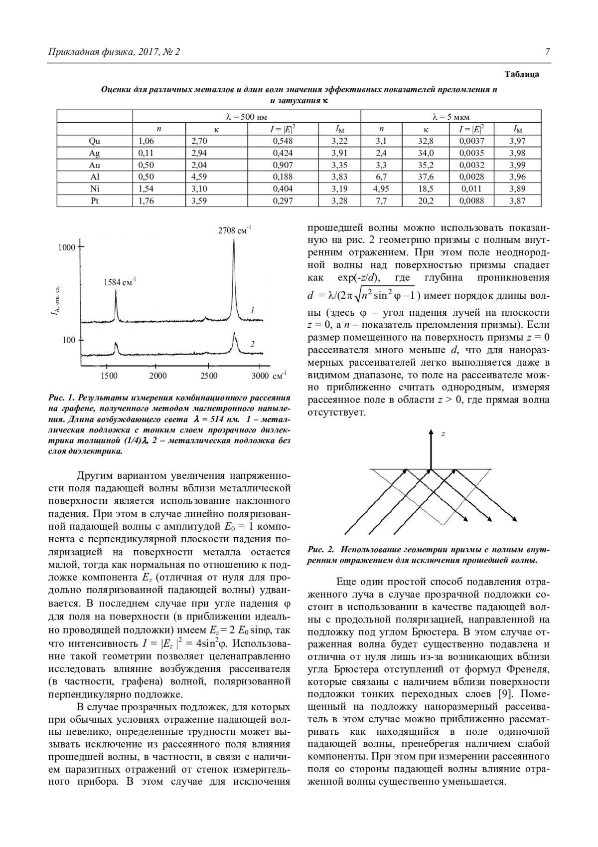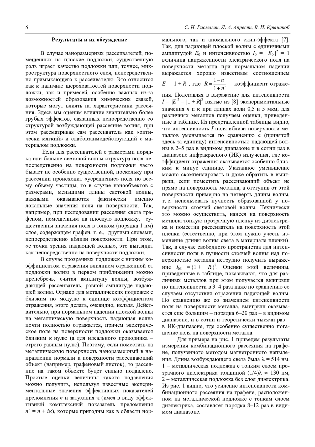 1. Усиление интенсивности комбинационного рассеяния на графене, расположенном на металлической подложке с тонким слоем диэлектрика, теоретически составляет порядка 6–20 раз (практически 8–12 раз) в видимом диапазоне.