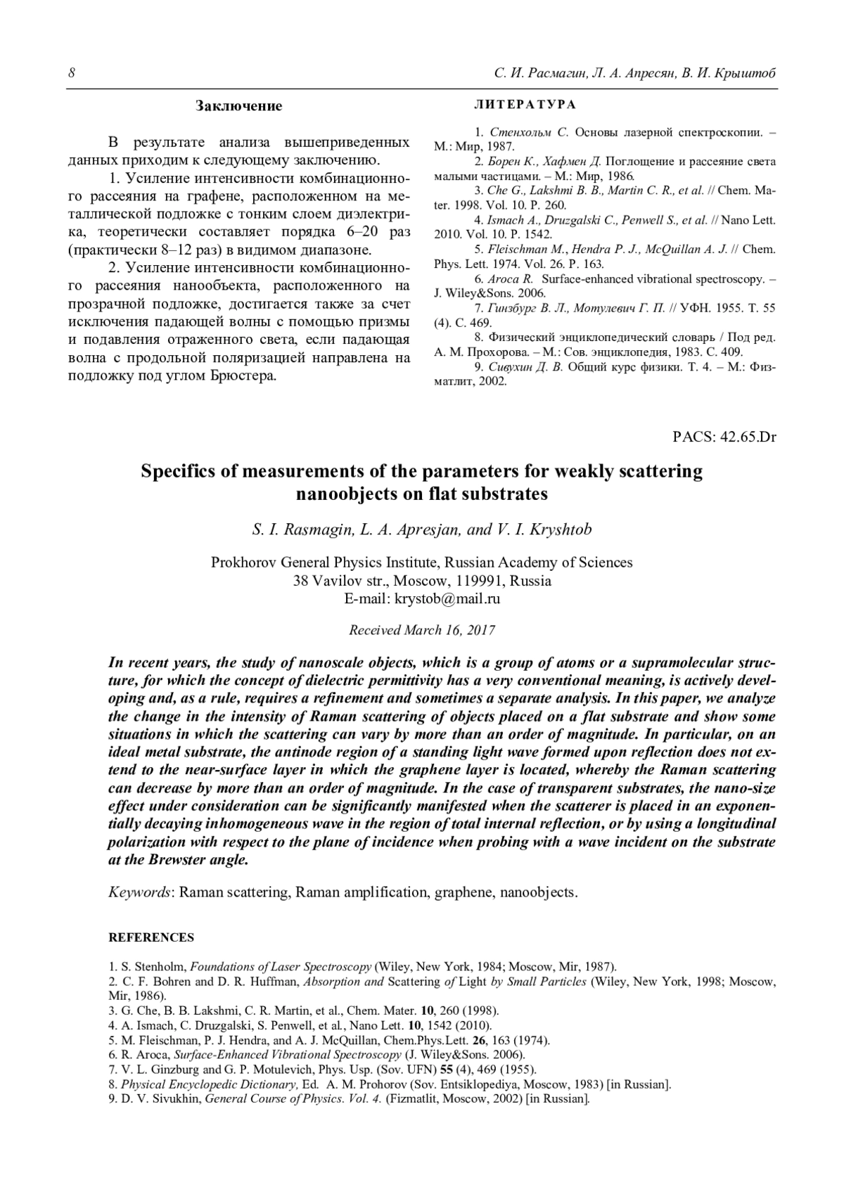 Расмагин С. И., Апресян Л. А., Крыштоб В. И. О специфике измерений параметров слаборассеивающих нанообъектов на плоских подложках 5