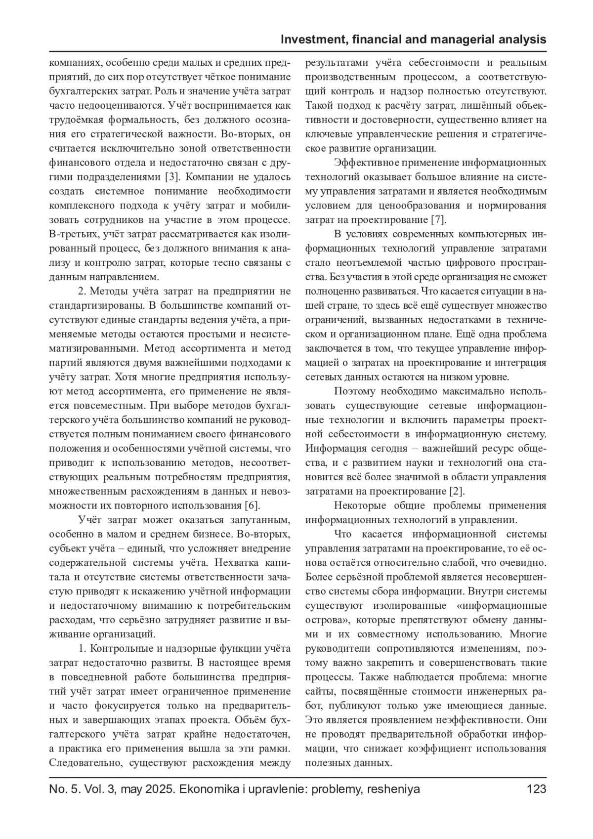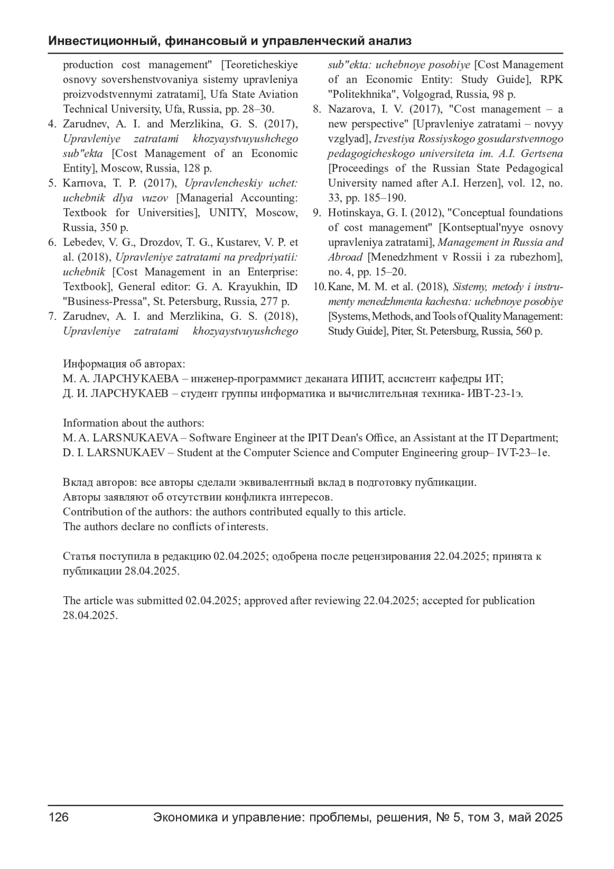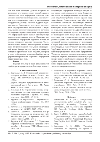 8. Назарова И. В. Управление затратами - новый взгляд // Известия Российского государственного педагогического университета им. А.И. Герцена. - 2017. - Т. 12, № 33. - С. 185-190.