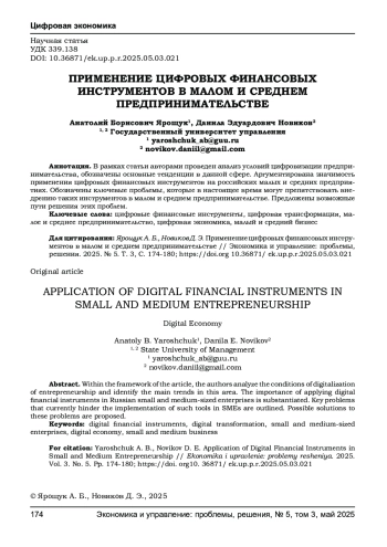 В рамках статьи авторами проведен анализ условий цифровизации предпринимательства, обозначены основные тенденции в данной сфере. Аргументирована значимость применения цифровых финансовых инструментов на российских малых и средних предприятиях. Обозначены ключевые проблемы, которые в настоящее время могут препятствовать внедрению таких инструментов в малом и среднем предпринимательстве. Предложены возможные пути решения этих проблем.