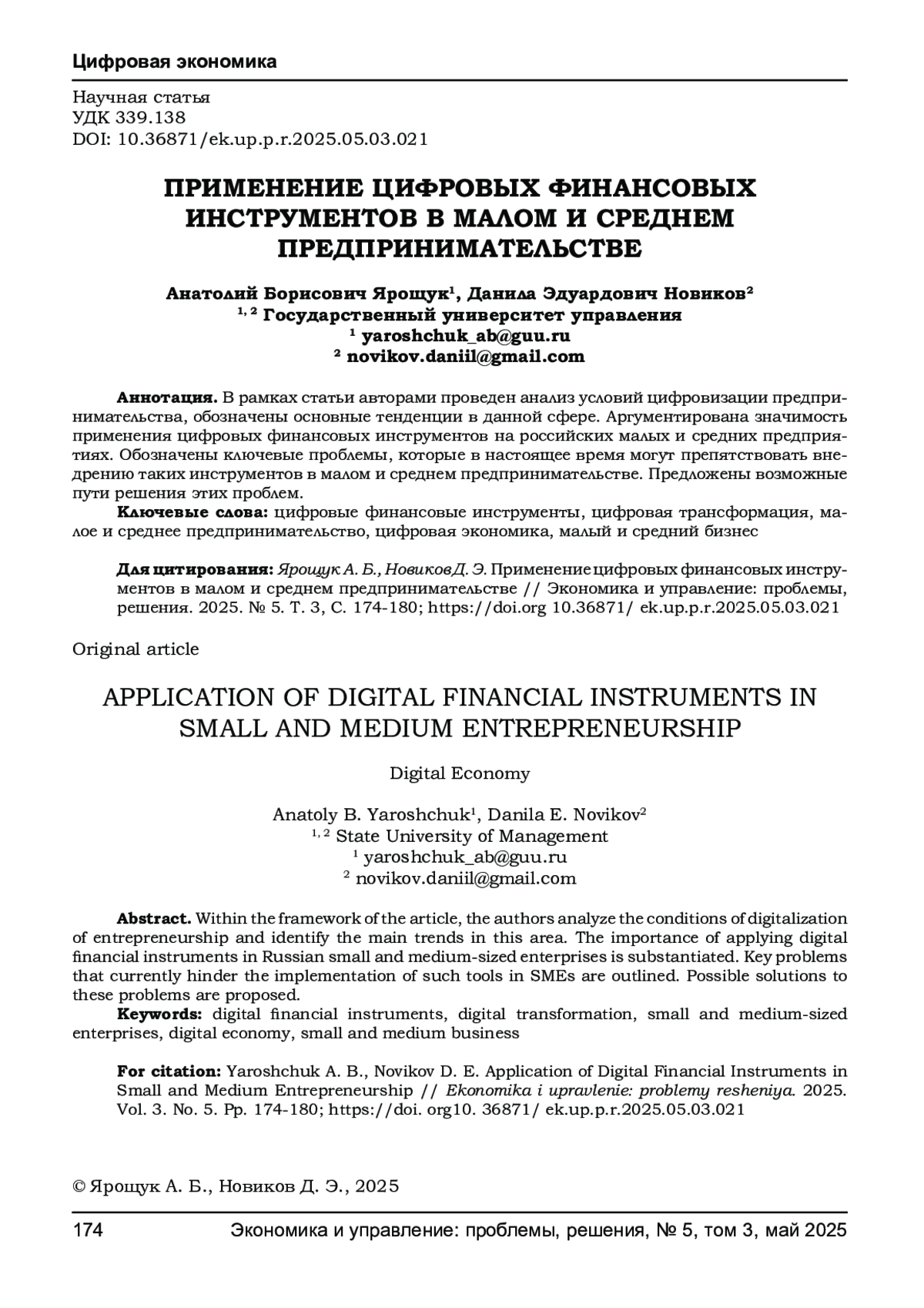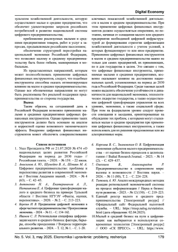 2. Анисимов А. Ю., Шумейко В. А., Шошин М. А. Цифровое предпринимательство: проблемы и перспективы развития в современной экономике // Вестник Академии знаний. - 2024. - № 4 (63). - С. 42-45. EDN: HJAZJI