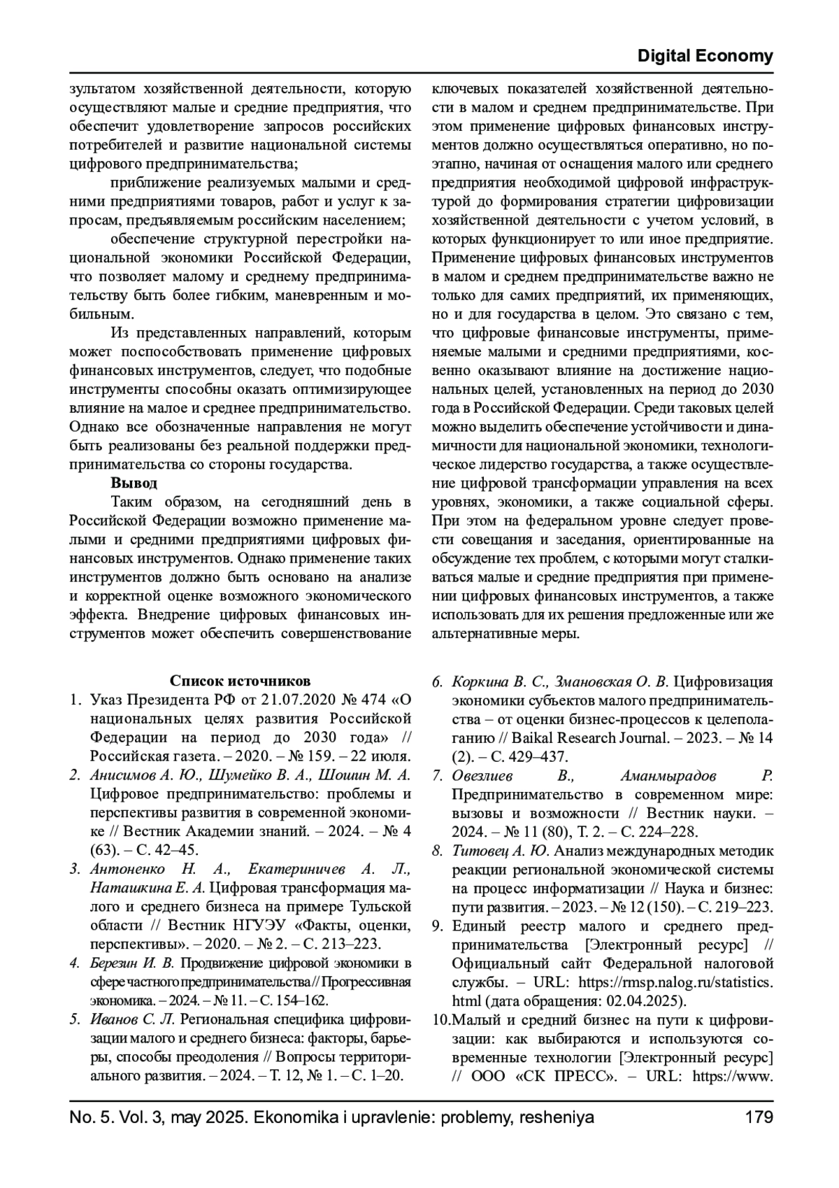 4. Березин И. В. Продвижение цифровой экономики в сфере частного предпринимательства // Прогрессивная экономика. - 2024. - № 11. - С. 154-162. EDN: PBYREJ