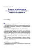 В статье рассматривается политическая стратегия внедрения искусственного интеллекта правительством США и её реализация на транспорте, стратегические цели и задачи Министерства транспорта, проблемы транспортной отрасли и их решения с внедрением искусственного интеллекта.