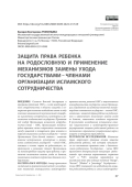 МАТЕРИАЛЫ И МЕТОДЫ. Автор применяет системный и сравнительный метод к исследованию положений универсальных международноправовых актов, решений ОИС и национального законодательства государств-членов Организации. Предметом исследования являются международные отношения государств – членов ОИС, связанные с защитой права ребенка на родословную и применением механизмов замены ухода за детьми, лишенными семейного окружения. В результате исследования установлено влияние национального и международно-правового регулирования защиты родословной ребенка на толкование и применение универсальных норм о защите и поощрении прав ребенка. РЕЗУЛЬТАТЫ ИССЛЕДОВАНИЯ. Исламское право закрепляет правовые основы защиты родословной ребенка, под которой понимается его постоянная правовая связь с биологическими родителями. Государства – члены ОИС применяют доктринальную концепцию «родословной» при помощи нормативных терминов “ ” и “ ”, которые переводятся на английский язык при помощи понятий “lineage”, “descent”, “filiation” и “parentage”. Государства – члены ОИС указывают на необходимость защиты родословной ребенка в своих международно правовых позициях, однако недостаточная координация их внешней политики в сфере защиты прав ребенка не позволяет государствам эффективно защищать данные позиции в международных организациях и органах системы ООН. Термин «право на родословную», закрепленный в Декларации о правах и заботе о ребенке в исламе 1994 г. и проекте Джиддской Конвенции ОИС о правах ребенка, означает право на постоянную правовую связь ребенка с его биологическим отцом. Данное право неизвестно Конвенции о правах ребенка 1989 г. и не совпадает по содержанию ни с одним из закрепленных в ней прав.