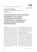 РЕЗУЛЬТАТЫ ИССЛЕДОВАНИЯ. Искусственный интеллект является одним из наиболее важных и ключевых элементов устойчивого развития человечества, использование которого способствует техническому прогрессу и решению глобальных проблем. Международно-правовое регулирование использования ИИ находится на стадии разработки и формирования новых правил, при создании которых необходимо учитывать возможные риски и специфику применения технологии в различных сферах. Международное сотрудничество и обмен опытом в области правового регулирования ИИ призваны способствовать гармонизации подходов и стандартов в этой сфере с учетом принципов устойчивого развития, экологической безопасности и защиты персональных данных пользователей.