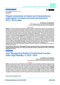Предмет. В статье рассматриваются портфельные модели управления активами институциональных инвесторов, применяемые в условиях высокой волатильности на финансовых рынках в период 2022–2024 гг. Макроэкономическая нестабильность, повсеместный рост инфляции, обострение геополитических рисков, а также повышение процентных ставок центральными банками разных стран мира привели к увеличению в портфелях доли облигаций, защитных активов (золото, сырьевые товары) и инструментов хеджирования.