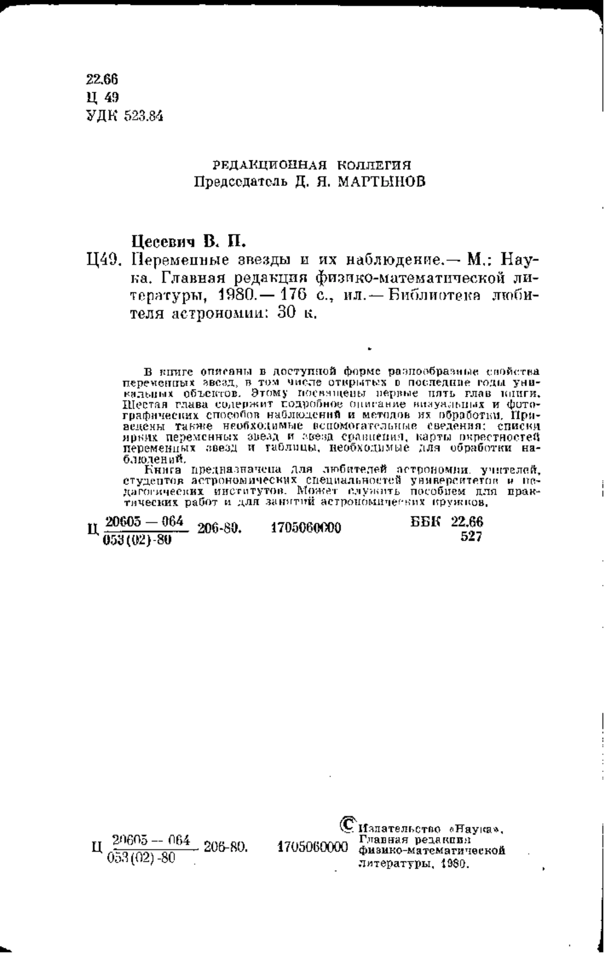 В книге описаны в доступной форме разнообразные свойства переменных звезд, в том числе открытых в последние годы уникальных объектов. Этому посвящены первые пять глав книги. Шестая глава содержит подробное описание визуальных и фотографических способов наблюдений и методов их обработки.